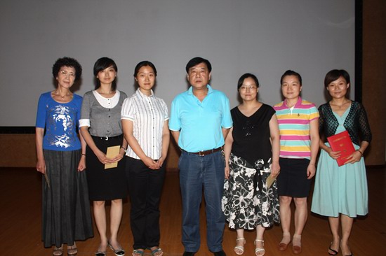 全院荣获此项殊荣的教师共有6位,我系就有两位教师入选,杨慧和刘敏等教师为全院和我系赢得了荣誉。(图为颁奖仪式现场,左四为科教公司钱伟解总经理,右二为杨慧老师,右三为刘敏老师)