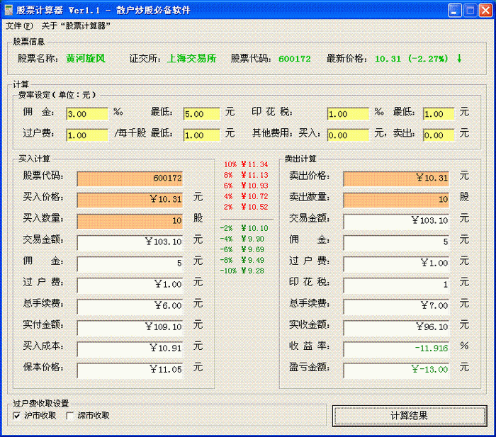 5、自动计算保本价格。