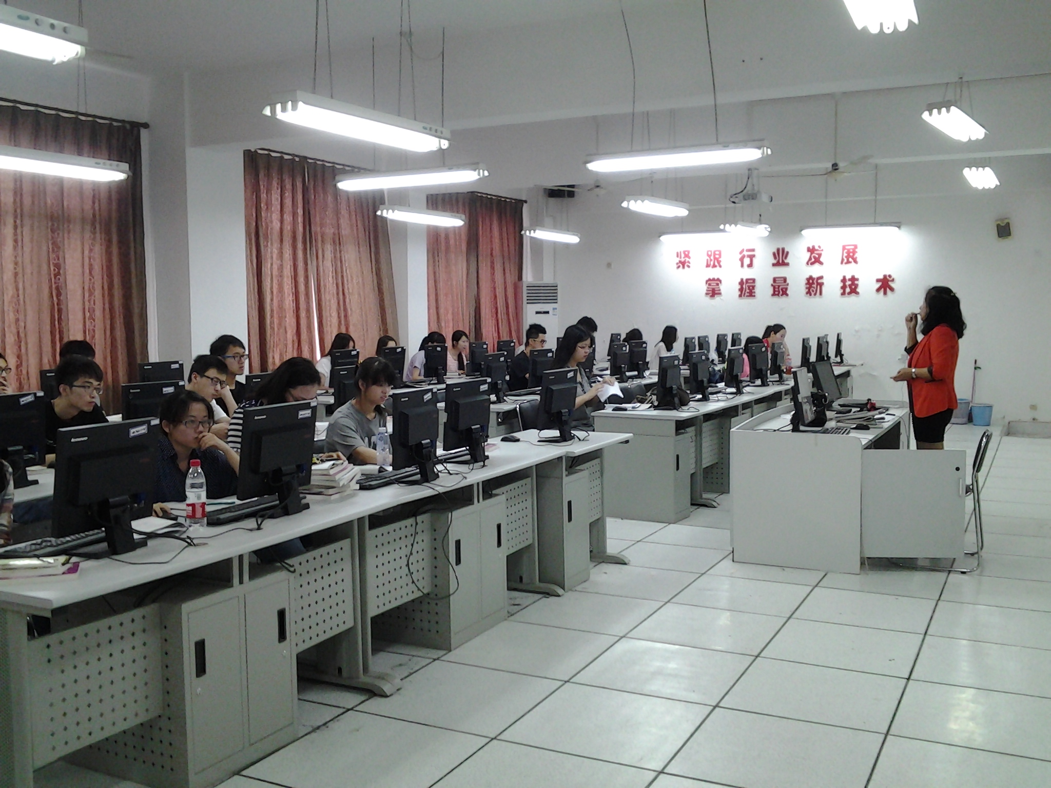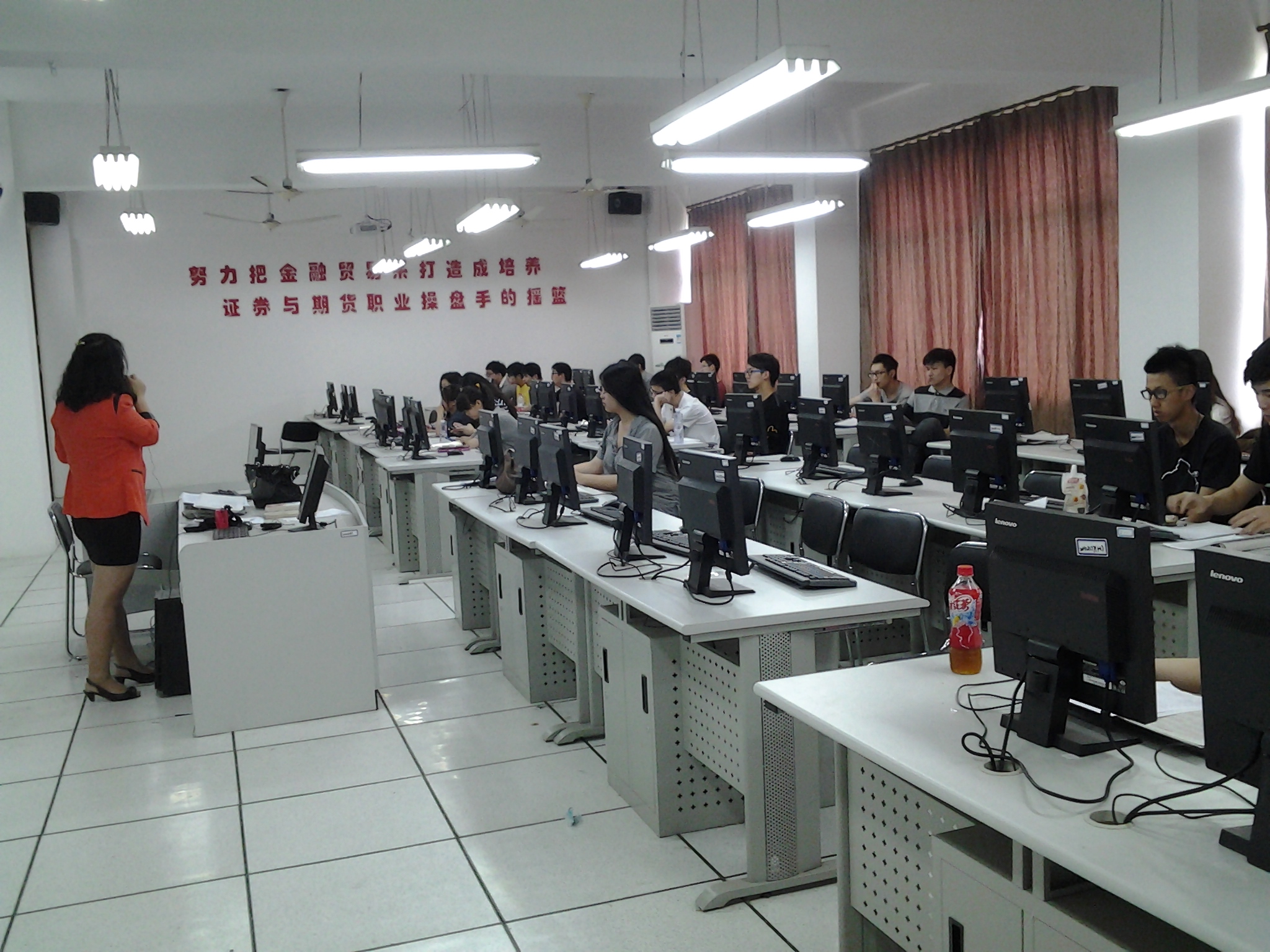 证券与期货专业主任黄侃梅老师在机房为12级证券专业学生实训