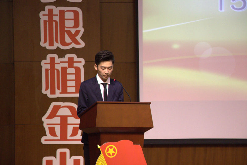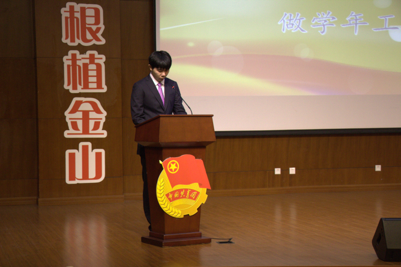 首先,全体人员奏唱团歌,接下来14届学生会主席杨帆致辞。他回顾了在他工作中所获得的荣誉,道出了自己在学生会活动中的成长感悟,并对16届学生会成员提出祝愿——不忘初心,希望新晋干部能带领干事再创佳绩。
