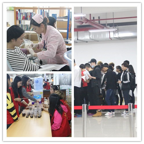 医务人员一直谨慎地给每个献血的学生采血,帮助他们止血,然后关心同学们在献血之后的身体反应。我校志愿者们也维持着现场秩序,帮助学生填写表格,准备红糖水,扶献血学生到休息区,送礼品。在场的每个人都在为献血事业热情服务着。