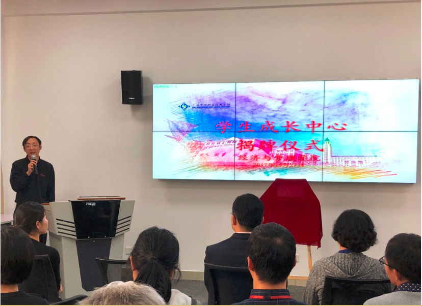 首先,由经管学院常务副院长张教授致辞,他强调学生成长中心是在校领导的关心和支持下建立起来的,感谢校方对经管学院学生工作的重视。