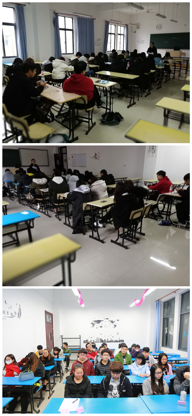 201814日,17级物流班在5-407召开以“备战期末,迎接新年”为主题的班会。本周期末考试也随之而至,不得不说,我们的心情和复习都是紧张的,但我们应该忙而有序。与会期间,辅导员张坤老师主要讲了期末注意事项,其中强调了期末安全。新的一年即将来临,她强调,期末期间除了紧张认真备考外,我们要把更多的注意力集中在安全问题上,放假临走之际,切记将教室卫生打扫好,宿舍电源切断,并将个人贵重物品带回家。