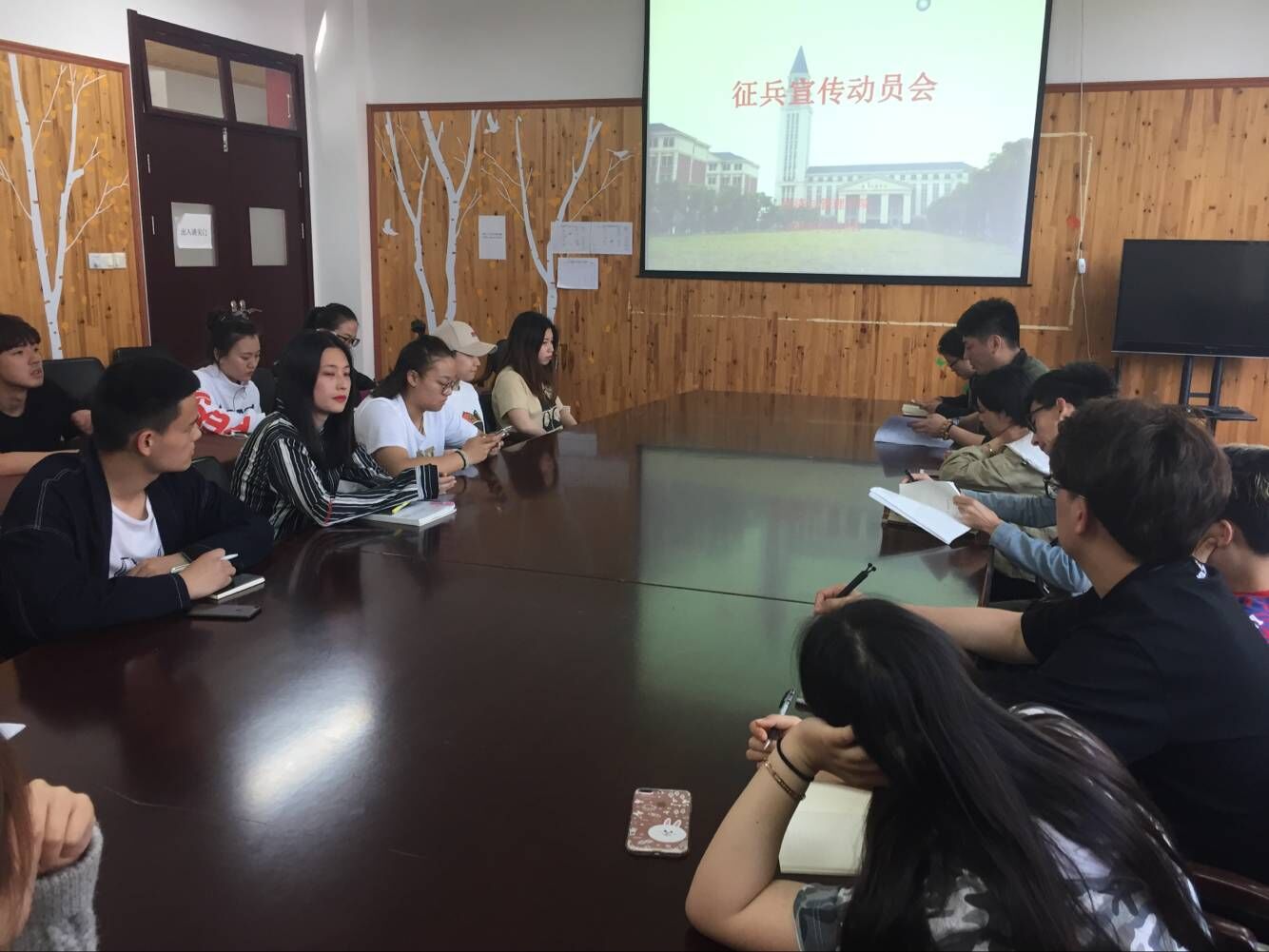 5月16日下午3点40分,经管学院党总支部副书记郭骏召集各班团支部书记召开2018年征兵动员宣传会。