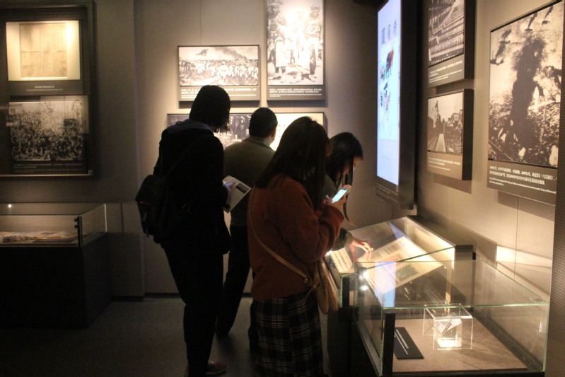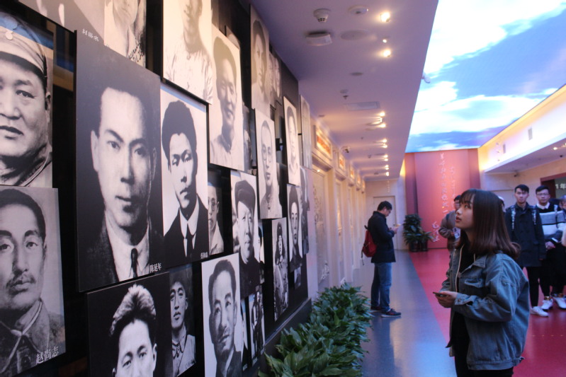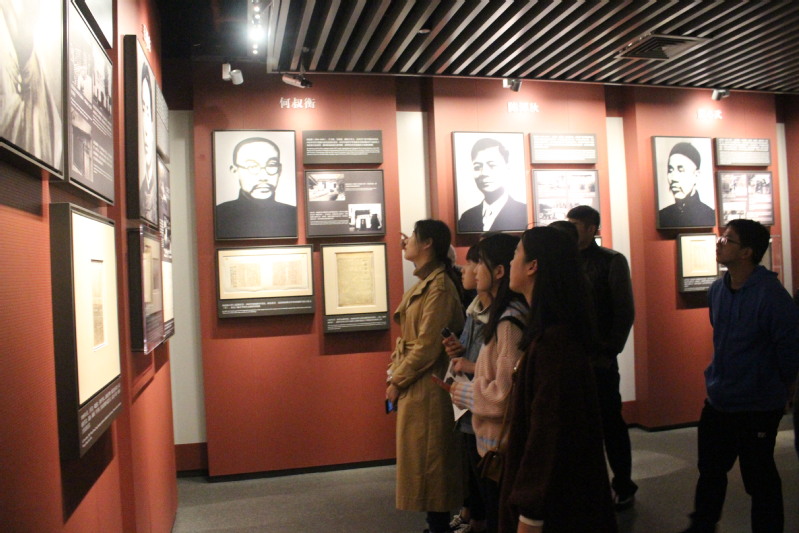 进入馆内,鲜红的党旗首先映入众人的眼帘,洋溢着神圣与庄严,大家在党旗下合影留念,记录下了这一具有纪念意义的时刻。纪念馆的二楼是展厅,厅内摆放了中国共产党的许多历史文物,展示了革命先辈留下的历史资料。一幅幅记载着我党血泪史的历史图片印入大家的脑海中,先辈们的革命精神震撼了我们每一位同学的心。最为吸引大家的是按照“一大”会议室原状开辟的蜡像室,室内陈列了当年参加会议的革命先驱者的蜡像,包括毛泽东、何叔衡、董必武等共13人,栩栩如生的蜡像重现了当年的会议现场。