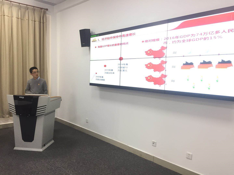 陈彦凯老师从经济视角谈及这些年我们亲身经历、亲眼见证的国内经济持续稳定发展,社会科技厚积薄发,整个社会繁荣向上,政治生态风清气正。“从建国初期的一穷二白到欣欣向荣的辉煌中国,靠的是一代又一代人的顽强拼搏,靠的是中华民族自强不息的奋斗精神。贪图安逸、乐享清闲、怕苦受累,不是年轻人的格调,不在困难面前叫苦,不在挑战面前退缩,这才是正确的姿态。”