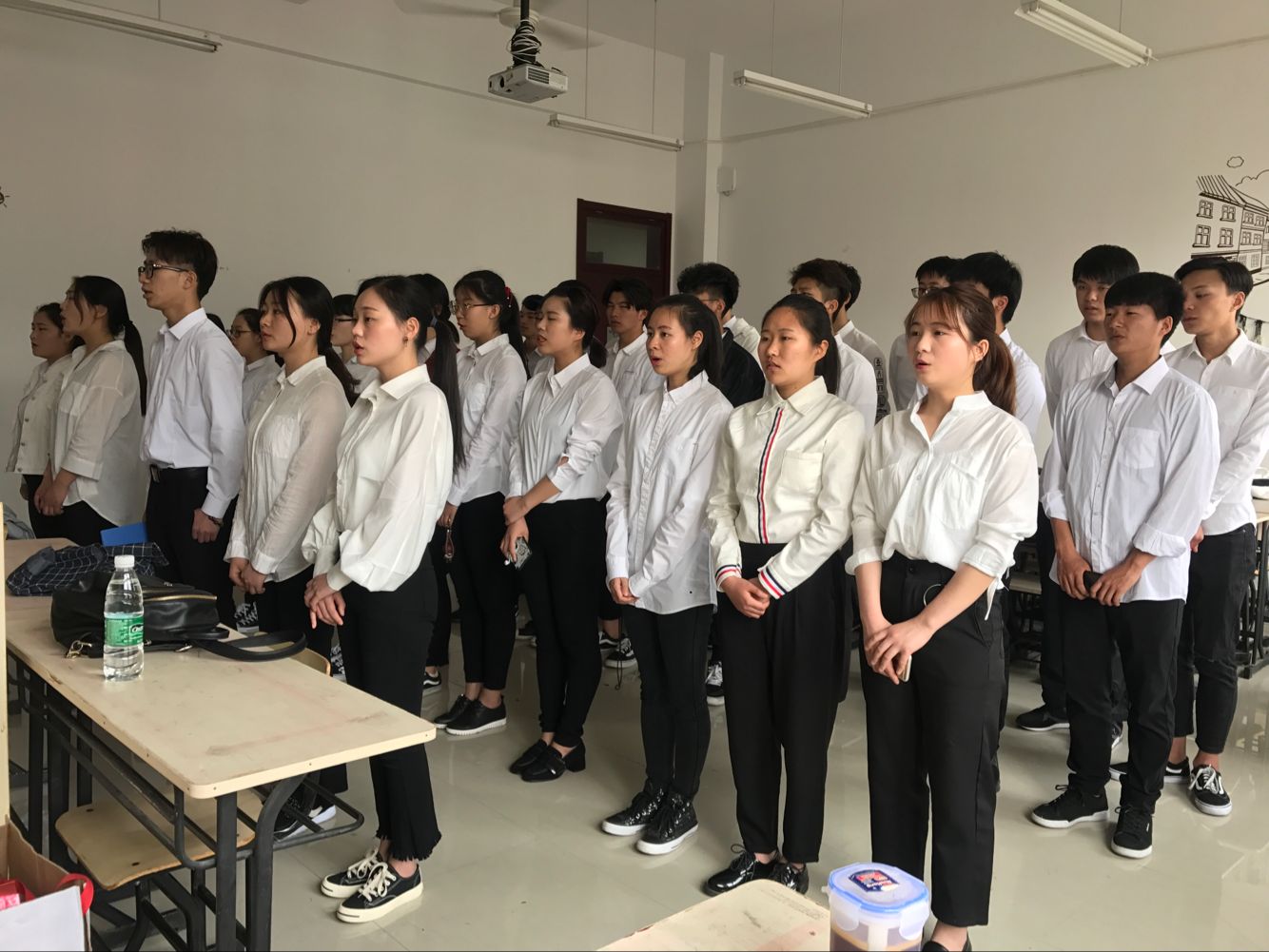 为弘扬爱国主义情怀,歌颂和美校园生活,展现学院学生活泼乐观、积极向上的精神风貌。2018年4月27号下午14:30,经济与管理学院在3号楼302教室举办了一场“班班有歌声”的比赛。参与本次比赛的有经济与管理学院党总支副书记郭骏老师,党总支组织委员、第一党支部组织委员兼分团委书记李玲老师,党总支宣传委员兼第一党支部书记陈萍萍老师、第一党支部宣传委员曹小玉老师、第一党支部组织委员高明老师以及各班辅导员老师和17级10个班级队伍,并由各位老师担任本次比赛的评委。