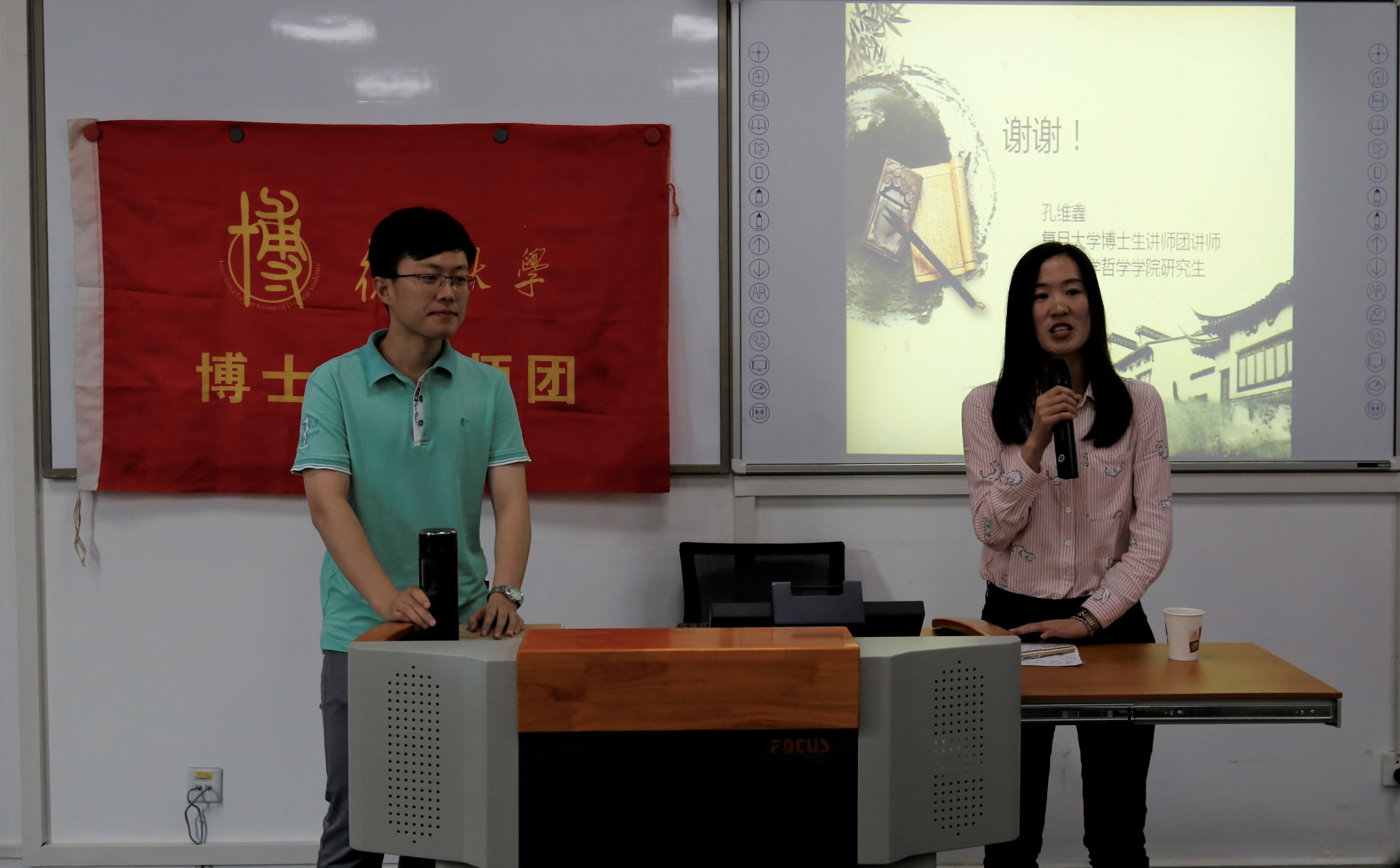 为继承和弘扬中华优秀传统文化,提升大学生入党积极分子的知识文化素养,5月23日下午2点,经管学院邀请复旦大学讲师团讲师孔维鑫进行了以“《中庸》的智慧”为主题的讲座。经管学院党总支部书记石成玉,第一党支部书记陈萍萍、宣传委员曹小玉以及全体高党同学共同聆听了此次讲座。