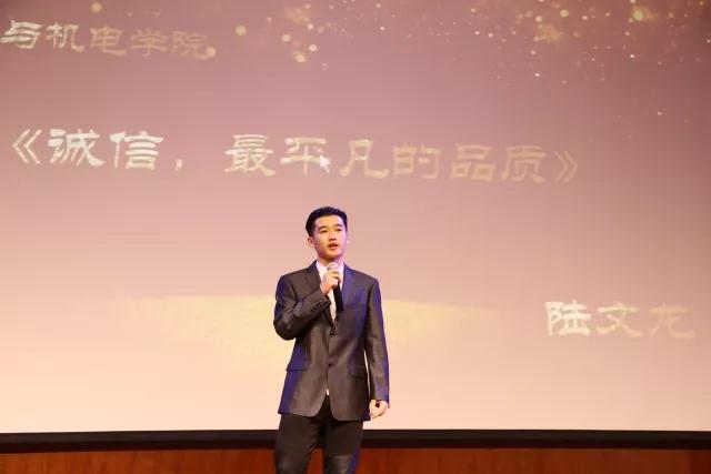 徐昂演讲的题目是《诚信,让人生更精彩》,他激情澎湃的为我们讲述了他对诚信的感悟,用一张张照片展示了不诚信所造成的危害,告诫大家要做一个时刻遵守诚信的人,不是为了别人而是为了自己。