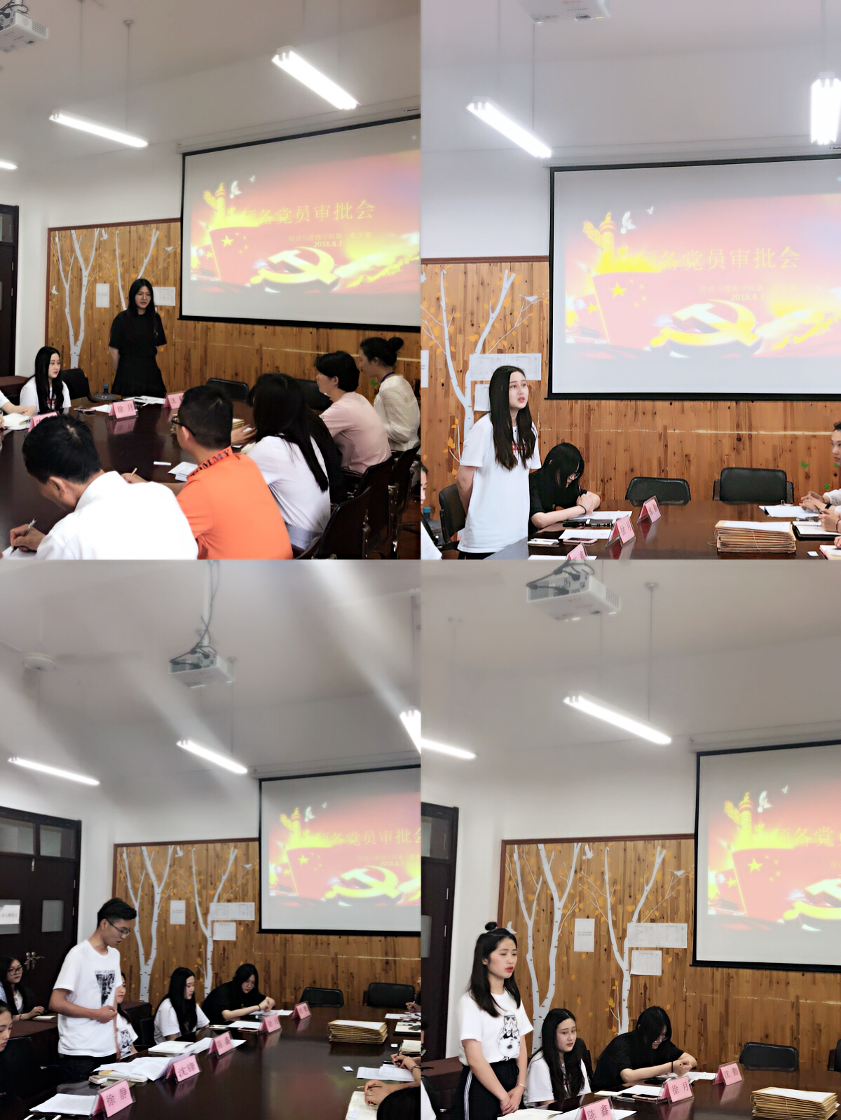 首先由审批对象16会计4班沈勤、16会计1班徐月、16旅游2班陈鑫、16物流2班沈锋、16金融2班徐静、16金融1班顾梦怡,16国商1班万璐昕和16会计6班尤倩进行自我介绍并从思想上、生活上、工作上和学习上分别进行阐述,之后由他们的第一入党介绍人孙斌老师、陈萍萍老师、曹小玉老师对他们进行客观评价以及向他们提出了建设性的意见和建议。最后所有在场的党员老师进行匿名投票,经表决,全票通过上述八名同学成为预备党员。