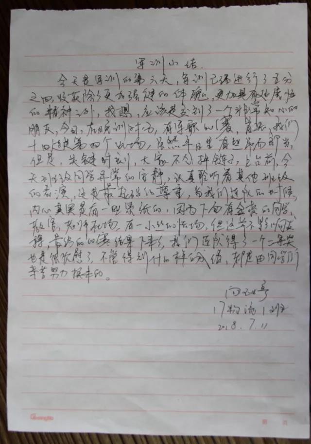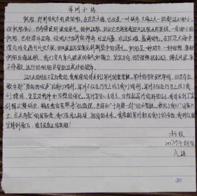 有位哲人曾经说过:“无法回味的感觉才是最美妙的感觉。”对于军训,有些感受不能言传,只能在淙淙的意会中回味。