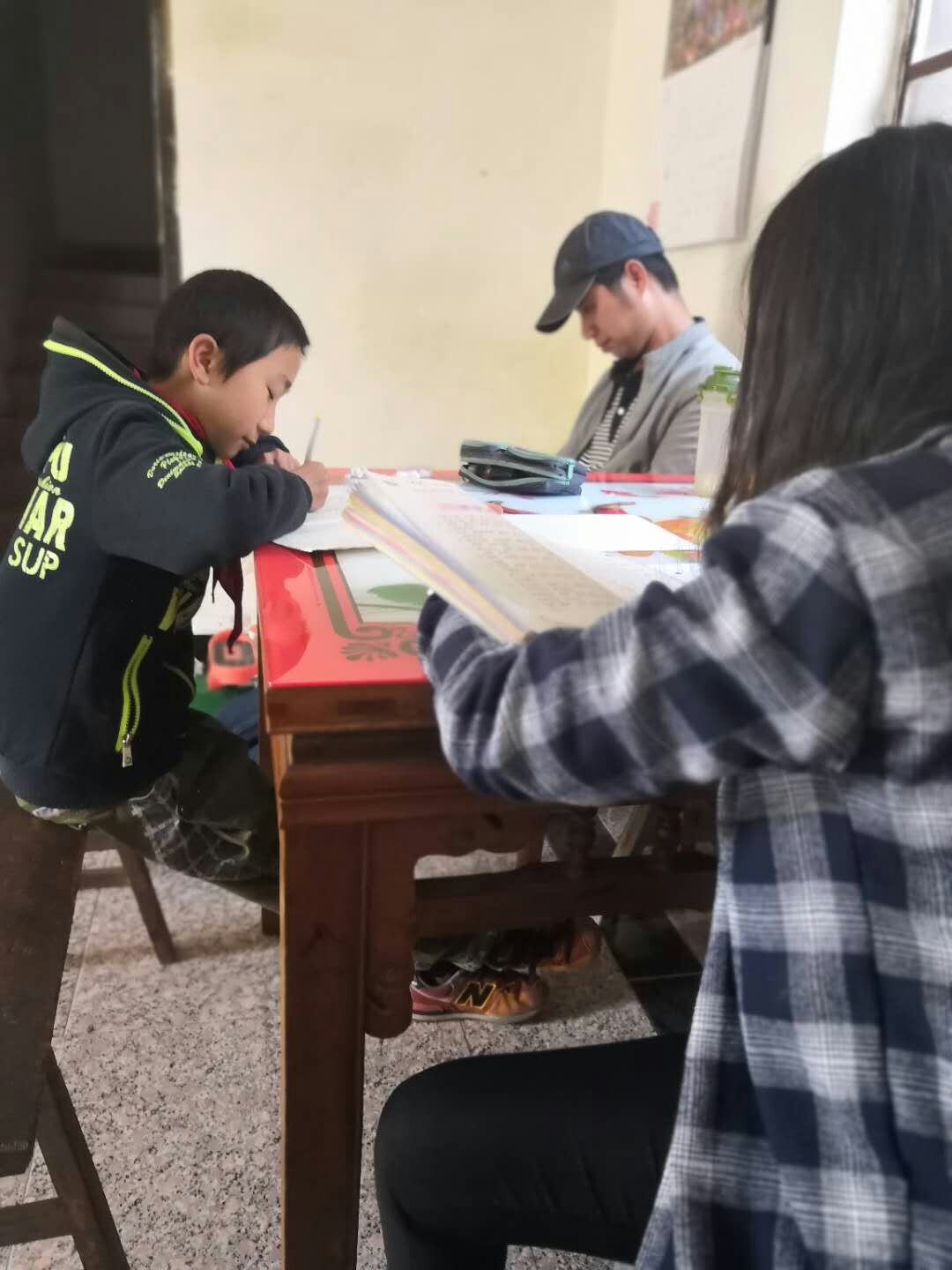 辅导完赵一帆小朋友作业后,跟他的父亲、奶奶聊了有关赵一帆小朋友的问题,赵一帆小朋友在班级成绩属于中上等,基本上可以跟的上老师的上课进度,作业也能按时完成,但是有一点贪玩电子产品。在交谈的过程中,因为听不懂上海话,赵一帆小朋友充当了翻译者的工作,所幸,交谈很成功。