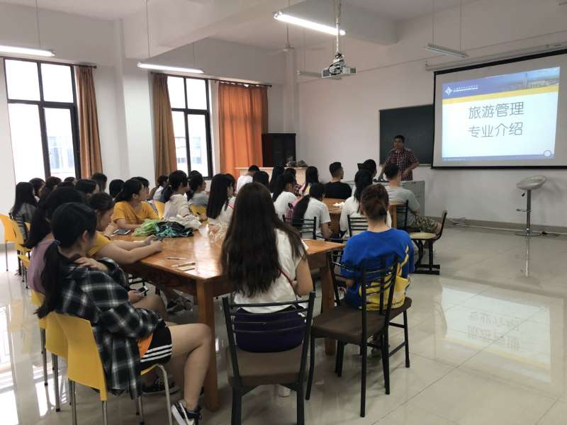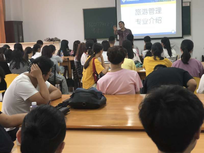 2018级旅游专业新生67名,比实际录取人数多1人,教室里人声鼎沸,同学们的热情非常高涨,满怀着对大学的憧憬。为了让学生能够快捷、详细的了解本专业的情况,明确目标和方向,更快的适应大学生活,更好的投入到专业学习中,专业主任滕建华老师将本专业的发展情况、师资情况、课程体系、教学条件,实习就业等做了详尽的讲解,同学们听的津津有味,若有所思。