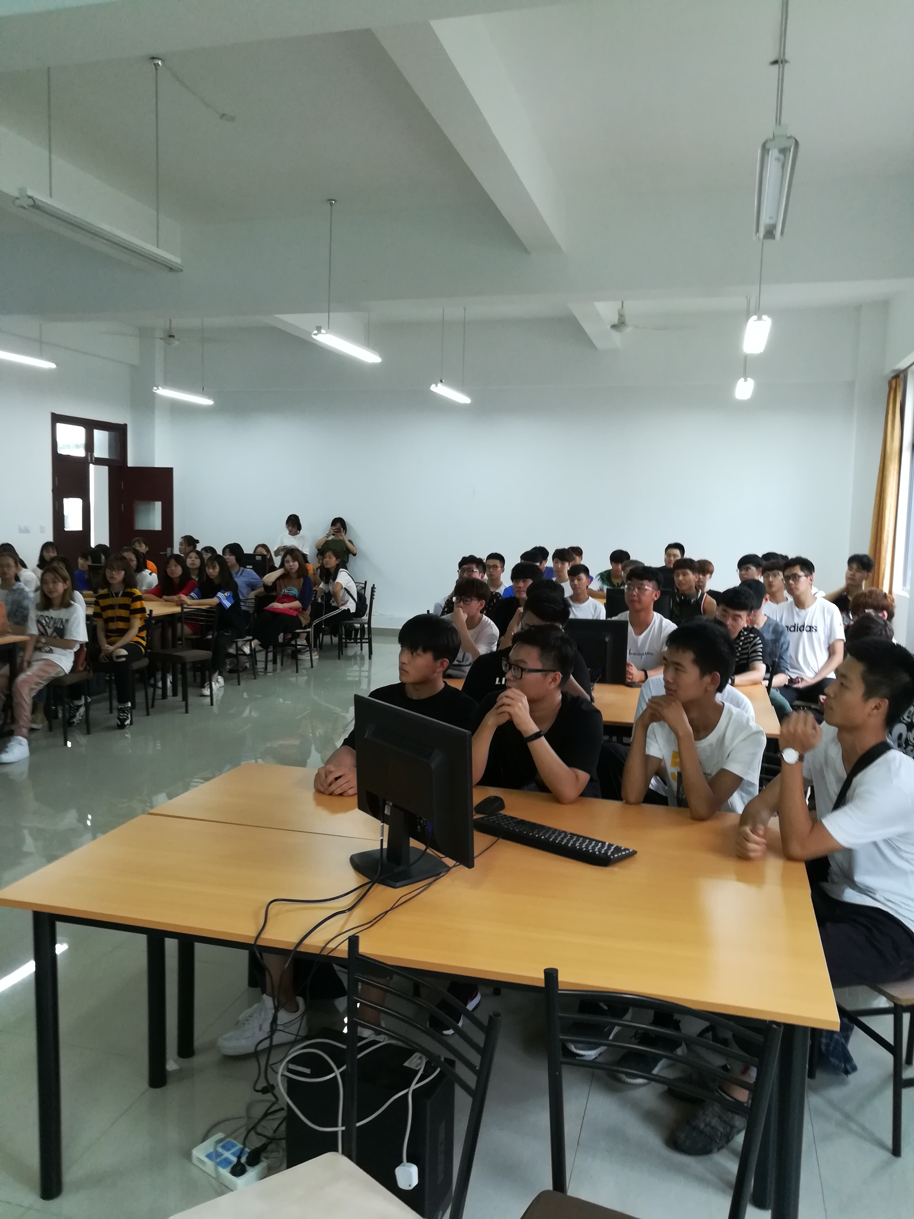 9月7日,工商管理专业新生专业介绍动员会在六号楼307工商专业实训室召开。会议由专业主任刘继荣老师主讲,工商专业2018级新生近80人参加了会议。