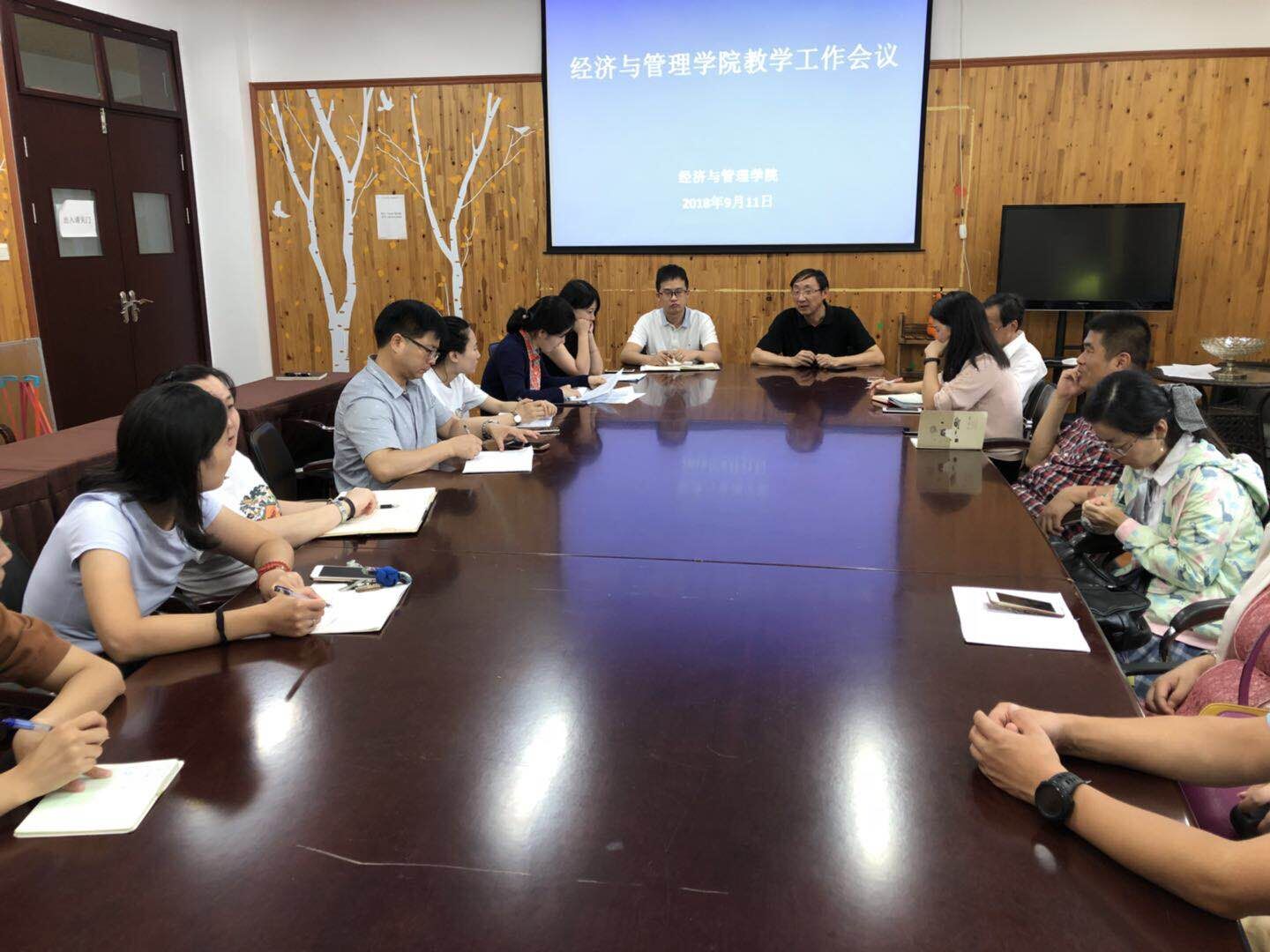 2018年9月11日周二中午12:30,在3号楼313会议室,经济与管理学院召开新学期教学工作会议,本次会议由常务副院长张炳达教授主持,经管学院专业主任、院长助理、教学秘书、实验员参会。
