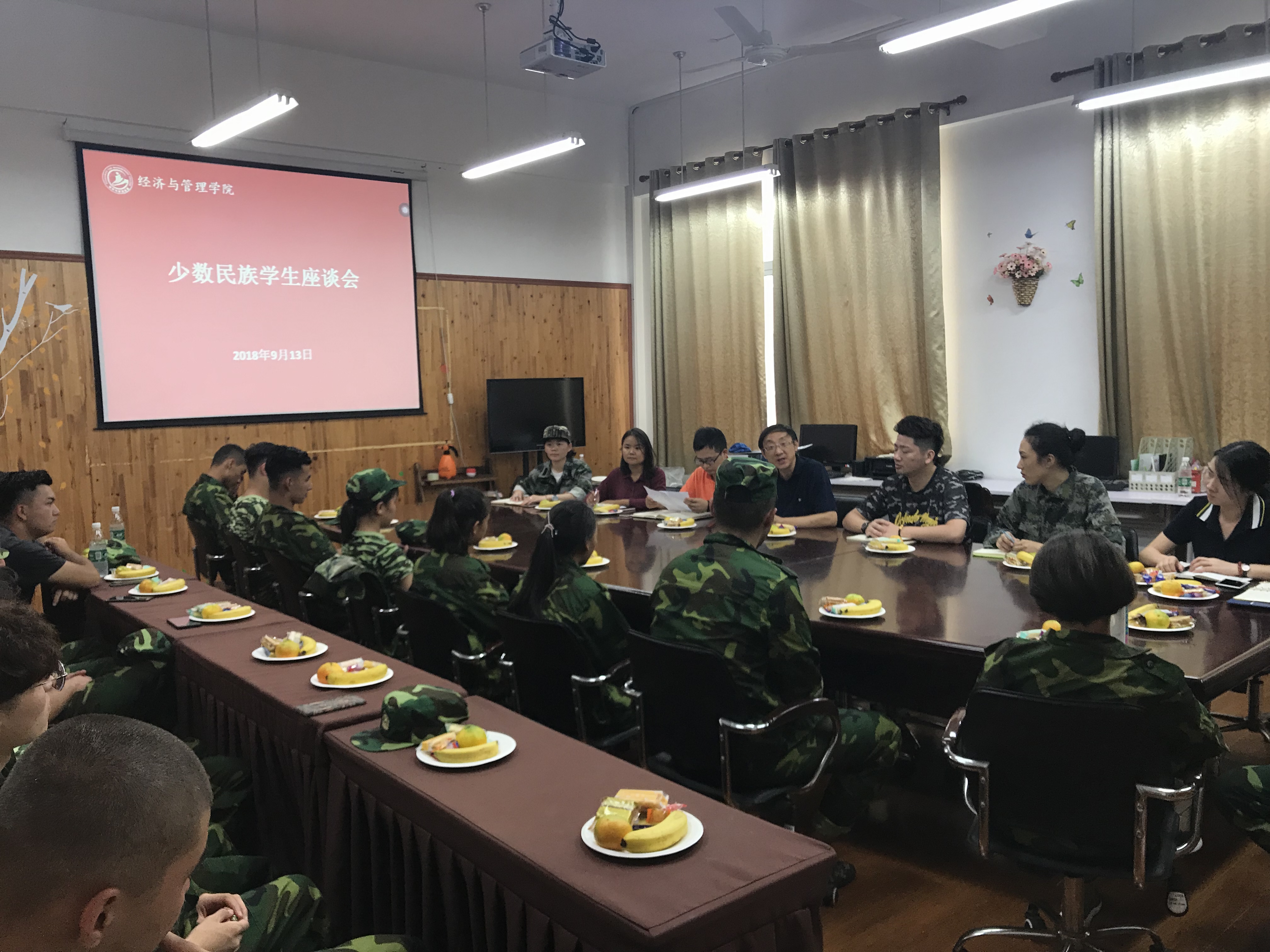 经济与管理学院于2018年9月13日13:00在3号楼313会议室组织召开少数民族学生代表座谈会,出席本次座谈会的有经济与管理学院常务副院长张炳达教授、党总支副书记郭骏老师、分团委书记岳建梅老师、校少数民族辅导员孜拉老师、全体新生辅导员和2018级少数民族学生代表,会议由经管学院党总支书记石成玉主持。