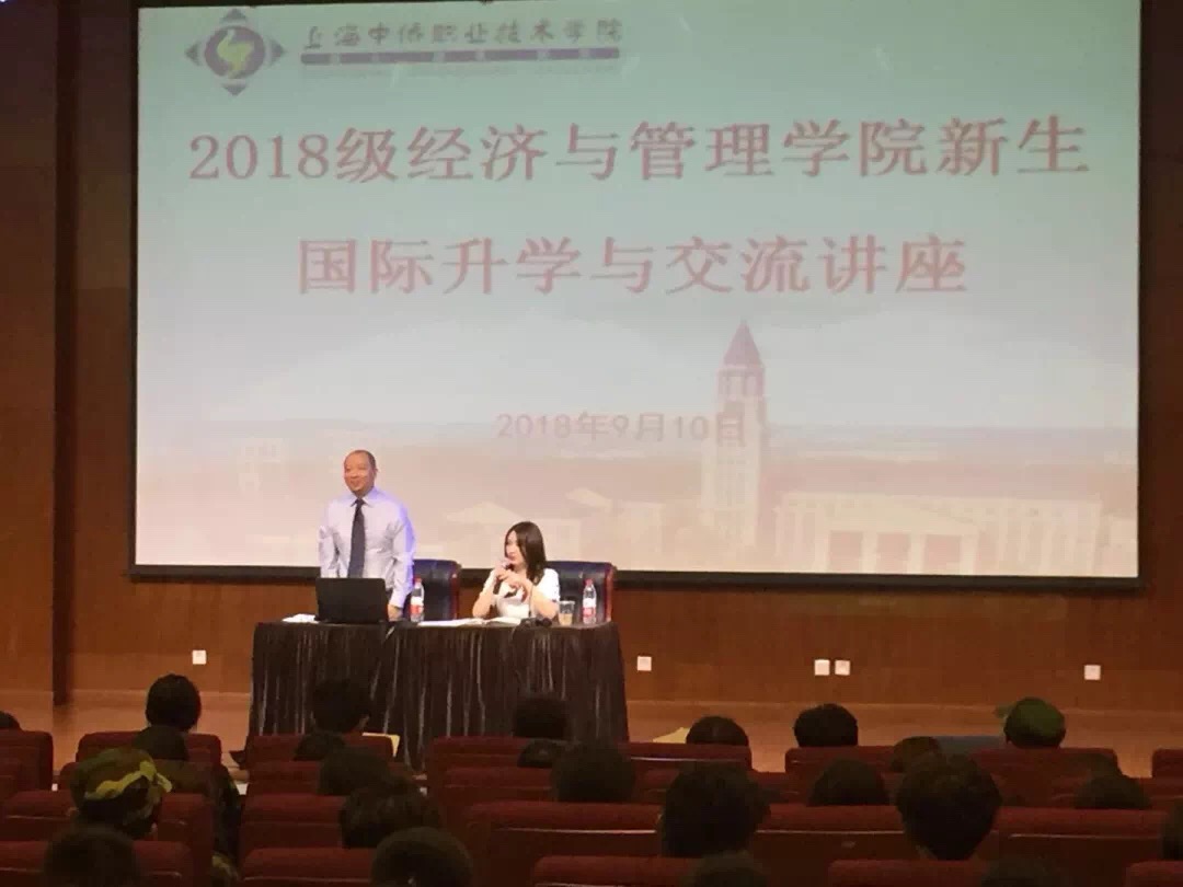 经济与管理学院按照学校国际交流处要求和安排,在新生入学教育会后,于9月10日晚由国际交流处王凌处长、路宏老师和武怡冰老师组织,邀请了英国南威尔士大学Sam Huang老师为同学们进行赴英留学项目宣讲,Sam老师主要介绍了英国南威尔士大学各类专业和交流类项目,Sam老师鼓励大家志存高远、规划人生,站在世界的宏阔角度上思考未来的要求。为使更多优秀同学能够入选在校大学生国外交流项目,Sam老师建议同学们积极做好外语学习、专业准备等工作,并按照学院的统一安排和部署参与报名。此次赴英留学项目宣讲活动,使有意向留学深造的大一新生明确了三年学习方向和奋斗目标,希望同学们认真规划学习时间、坚持不懈、奋发图强。
