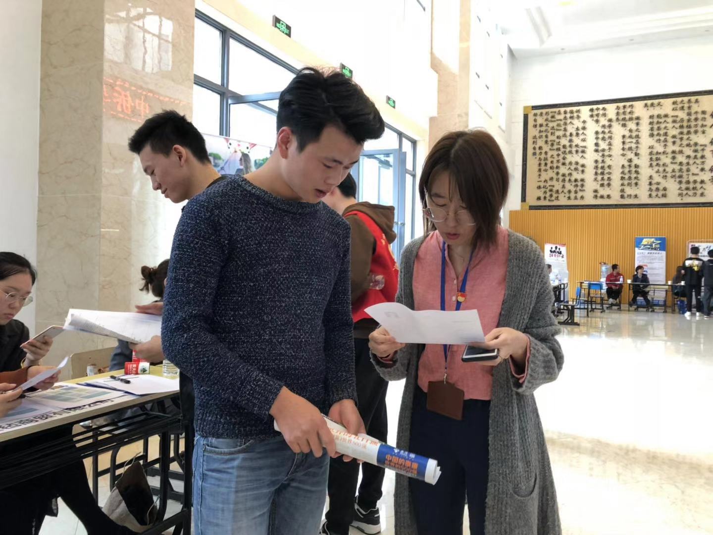 招聘会现场气氛热烈。学院领导与用人单位代表亲切交谈,对用人单位招聘计划、岗位要求以及学生应聘意向等情况作了深入了解。毕业班辅导员也深入到招聘会现场,对毕业生进行现场分类指导和重点推荐,指导毕业生应试与签约。