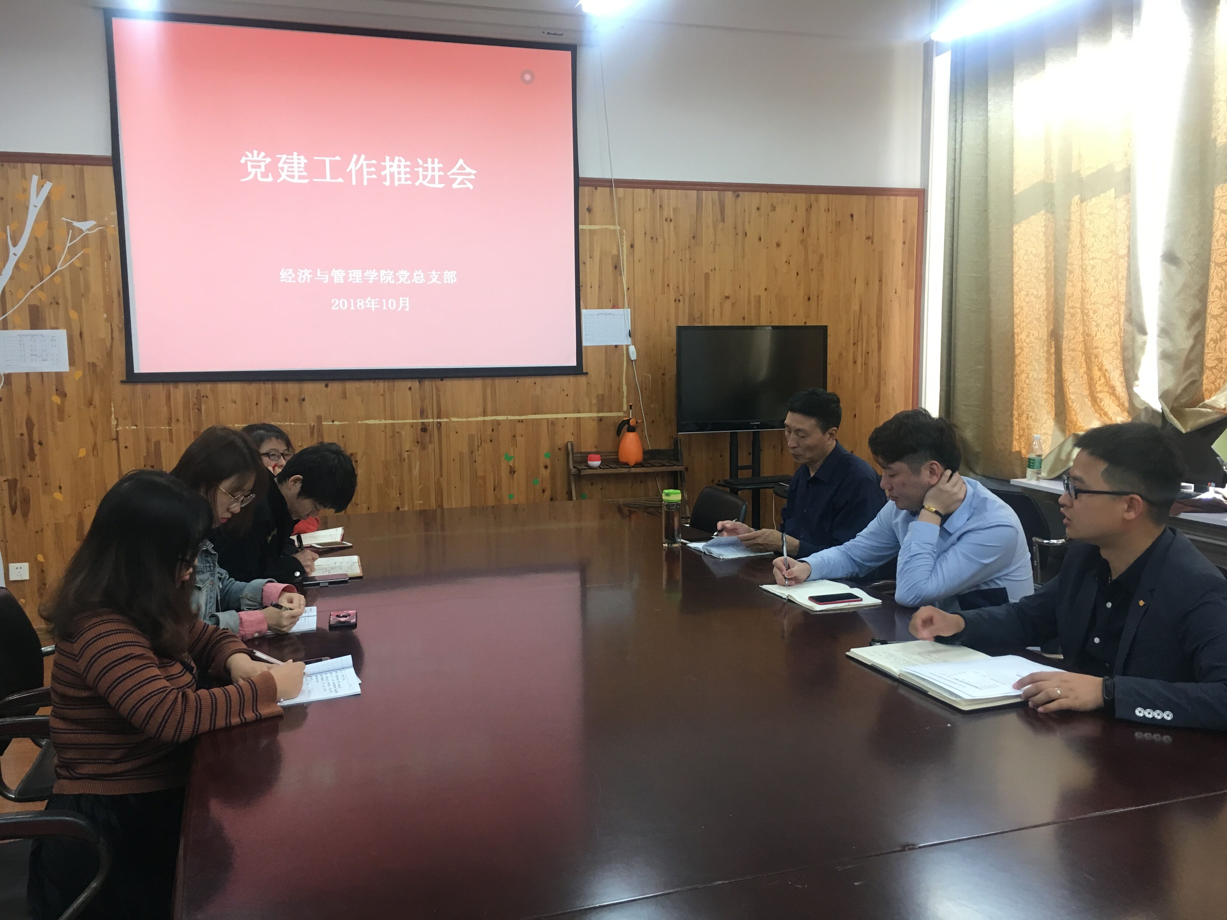 2018年10月31日经济与管理学院在313会议室召开专题会议,扎实推进学院党建工作,抓好党支部标准化建设。党总支部书记、副书记、组织委员、宣传委员、各支部支委和相关辅导员参加了会议。