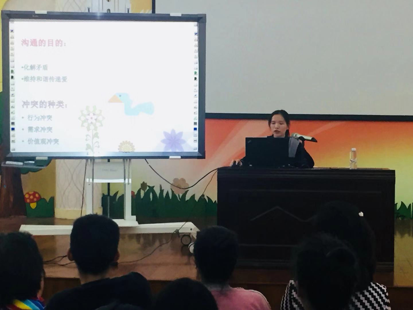 2018年10月30日下午,我院资深心理学辅导员符碧云老师为西营南路幼儿园的家长们开展了主题为《亲子沟通》的讲座,现场气氛热烈,家长纷纷表示收获颇丰。她向家长传递科学的儿童观、教育观和发展观,引导家长发现“孩子是有能力、有自信的学习者和沟通者”,信任孩子、赋权给孩子,让孩子成为最好的自己。