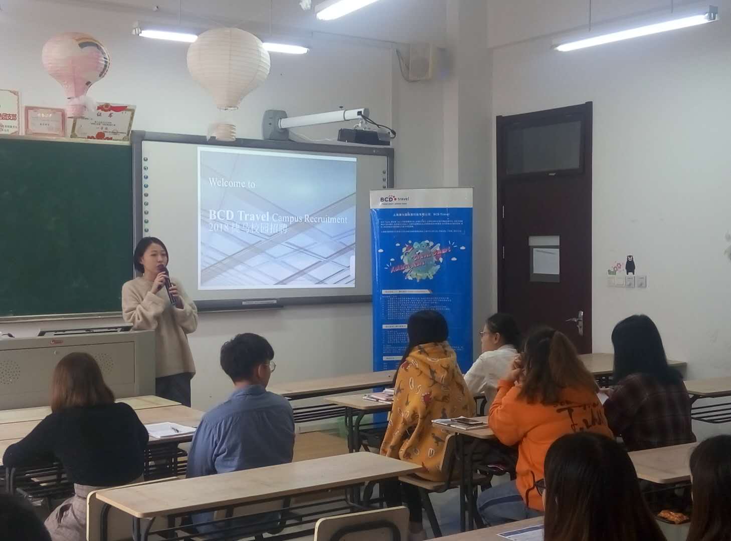 为了让我院大三学生得到更多的实习机会,为其搭建更高的实践平台,10月23日,我院旅游管理专业携手BCD Travel,在3号楼开展2018年旅游管理专业企业宣讲会。2016级旅游管理专业学生踊跃参加,BCD人事经理Grace胡为大家宣讲。