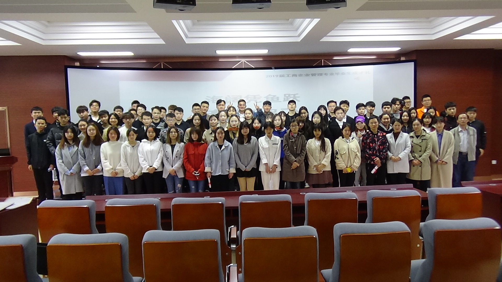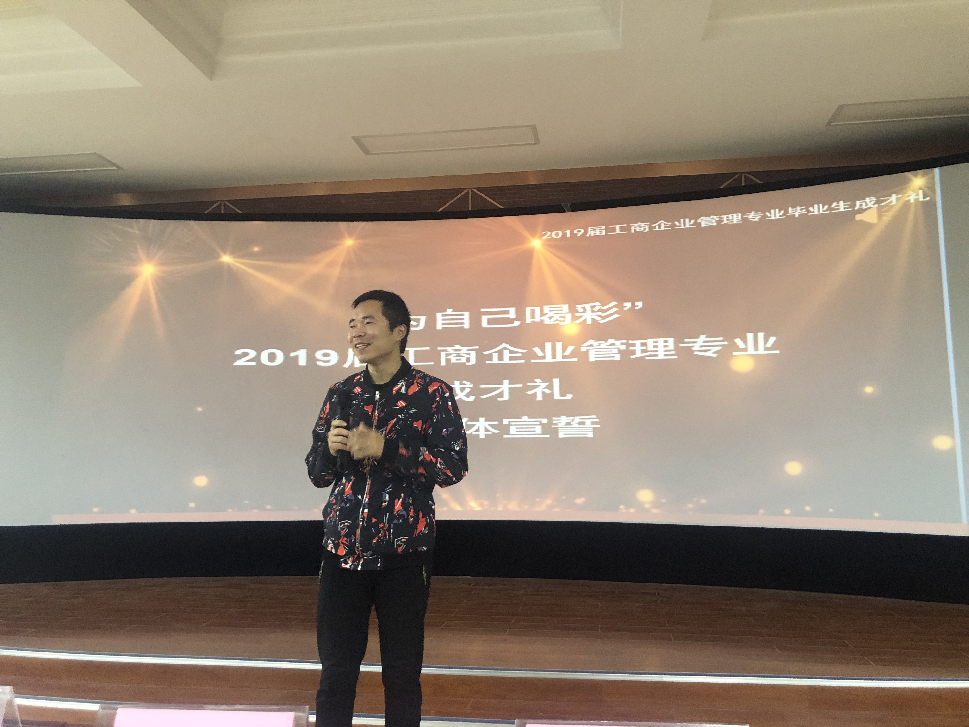 随后,刘继荣老师代表工商管理专业向全体同学致辞。他回忆起三年前迎接各位同学入校学习的情形,感叹时光如梭,希望各位同学珍惜好时光,在未来9周的定岗实习中,尽早完成职业定位与规划。
