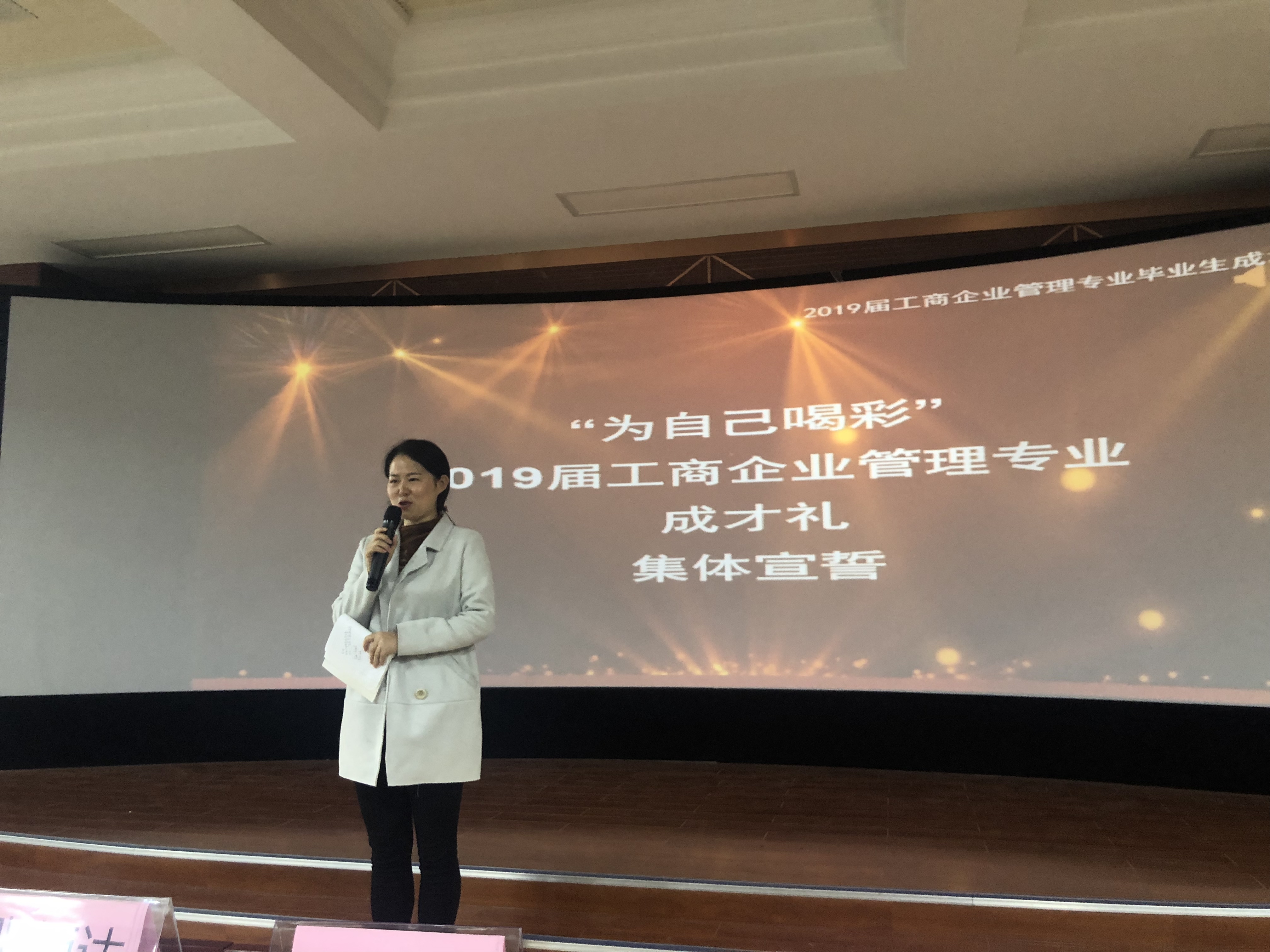 2018年11月16日上午,经济与管理学院16级工商专业学生共八十多人齐聚6号楼306阶梯教室,隆重举行“为自己喝彩·成才礼”仪式。经济与管理学院常务副院长张教授、院长助理李娟老师、工商管理专业主任刘继荣老师及工商管理专业全体教师出席了活动。
