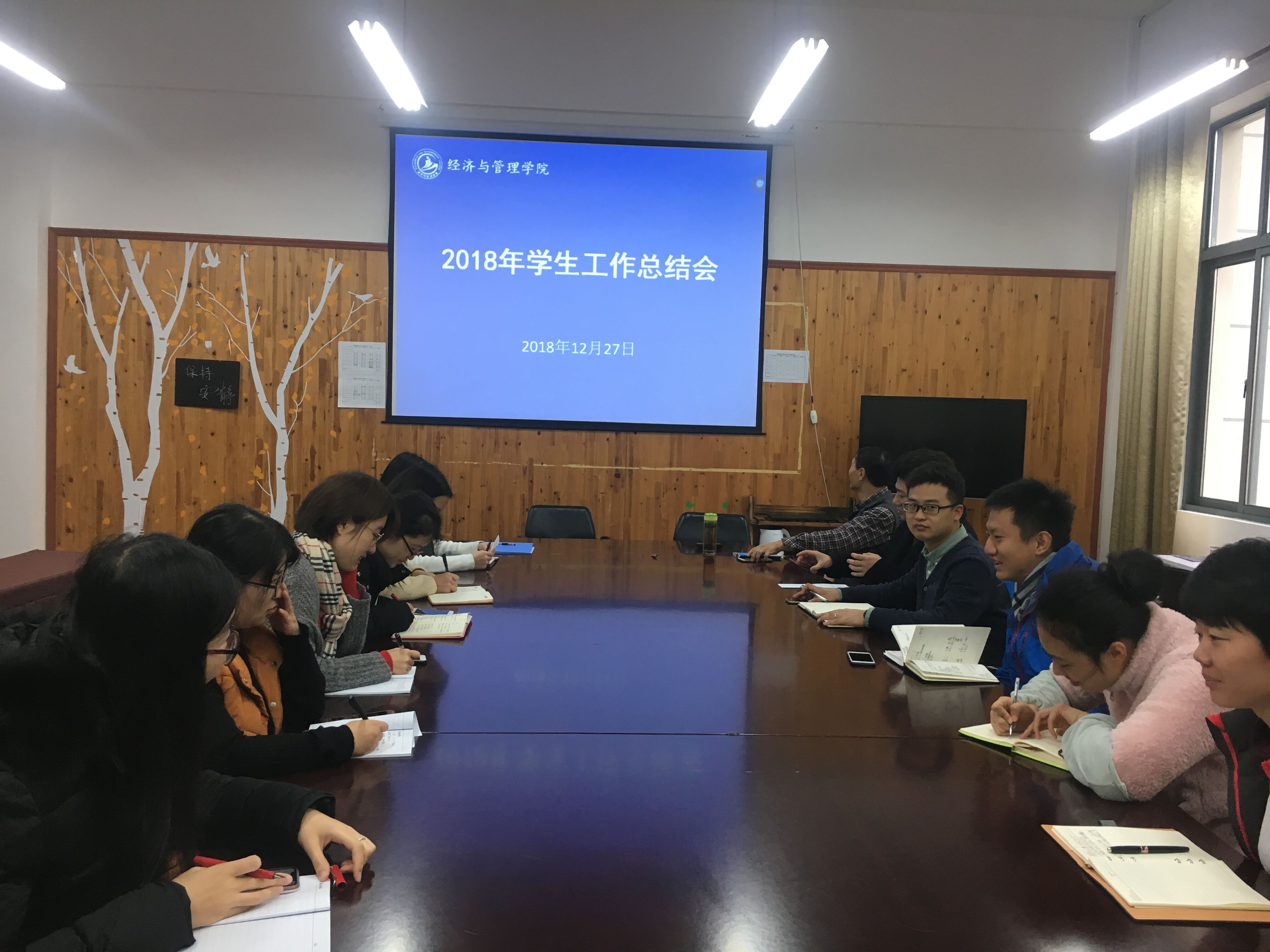 2018年12月27日上午9:00,经管学院在3号楼313召开2018年辅导员学生工作总结会,会议由经管学院党总支书记石成玉老师主持,党总支副书记郭骏老师和全体辅导员参加。