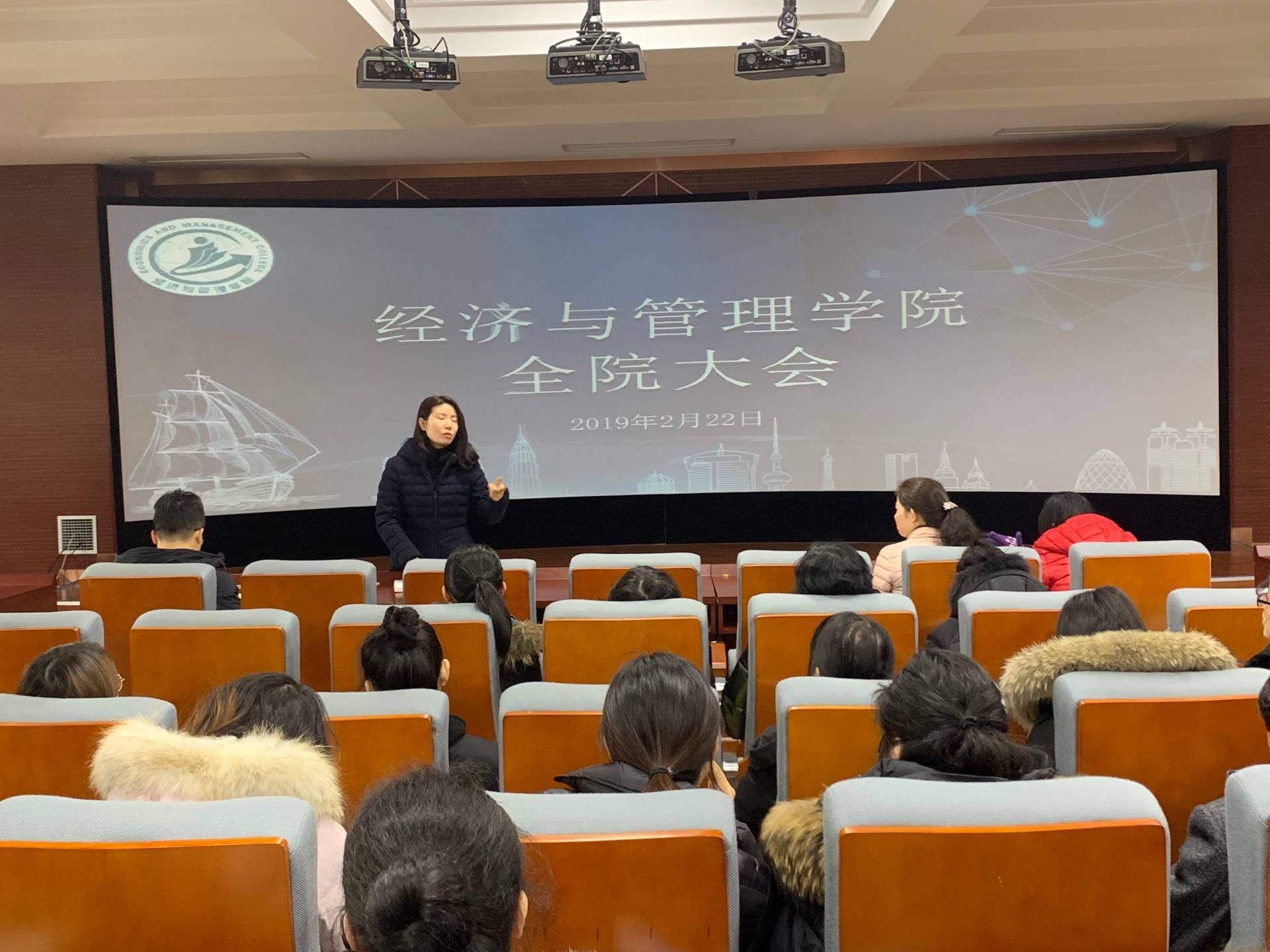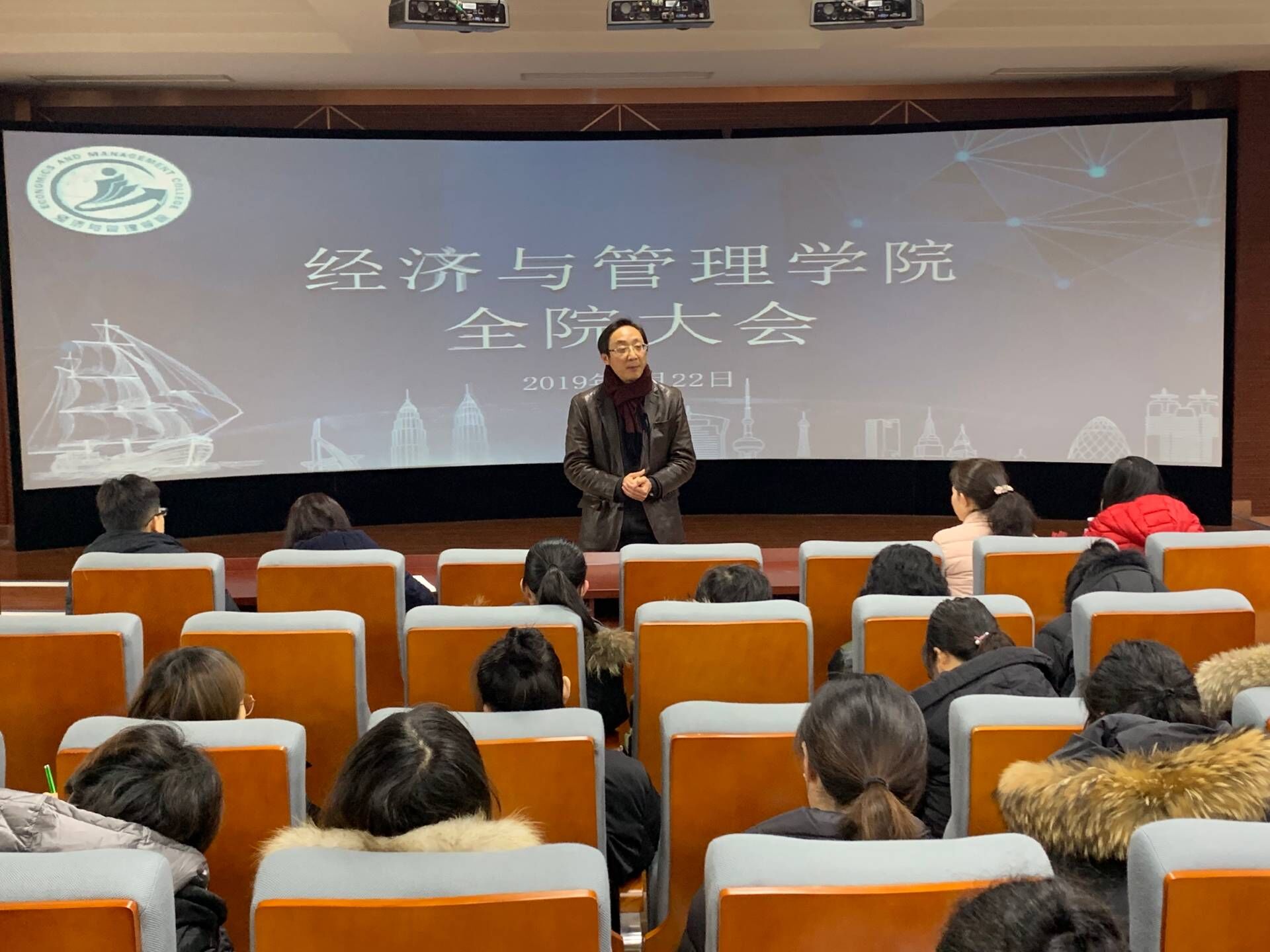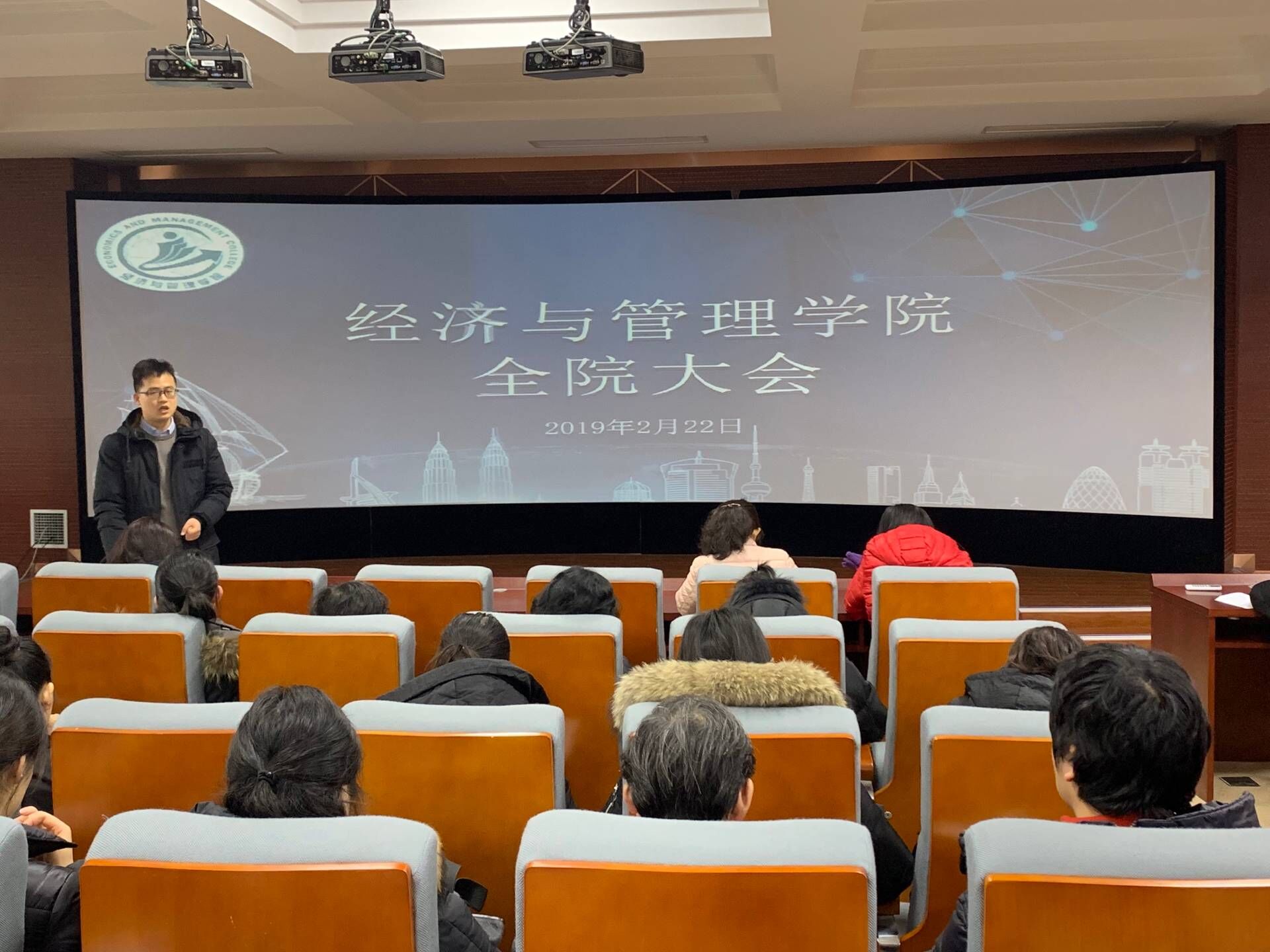 2019年2月22日周五中午12:00,在6号楼306会议室,经济与管理学院召开新学期全体教师会议,研讨经管学院新学期专业建设和内涵发展,本次会议由常务副院长张炳达教授主持,党总支书记石成玉老师,副院长郑玲老师以及全体专职教师和辅导员教师参会。