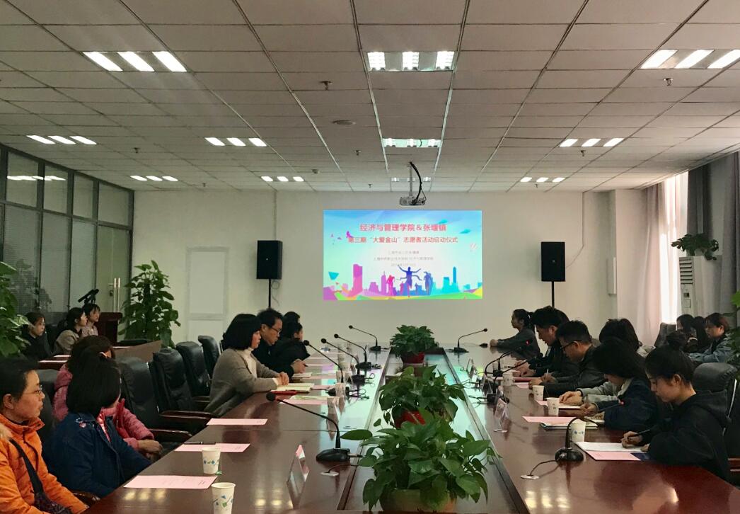 2019316日上午9:00,经济与管理学院在1号楼108会议室举办了第三期“大爱金山”志愿者启动仪式,参加本次仪式的有张堰镇社事办主任、红十字会常务副会长陶伟红、张堰小学校长张华根、张堰镇红十字会唐琴雯、经管学院党总支部书记石成玉、副书记郭骏、组织委员李玲、第一党支部组织委员邵静、分团委书记岳建梅、结对家庭,以及全体志愿者,启动仪式由经管学院党总支部副书记郭骏主持。
