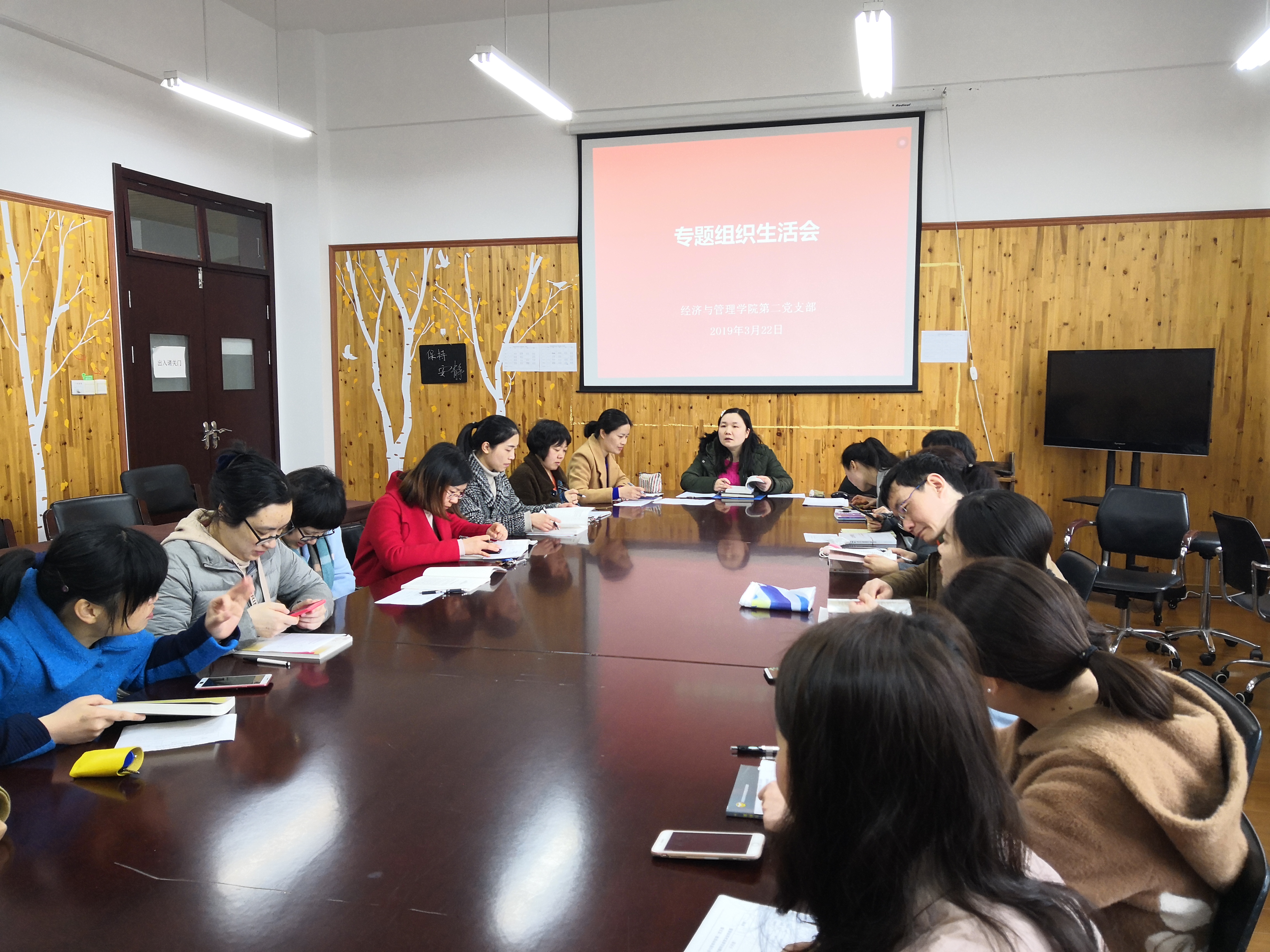 3月22日,经济与管理学院第二党支部在3号楼313召开专题组织生活会,会议由支部书记杨慧同志主持。会上,党员们汇报了“学习强国”使用的情况,纷纷表达了各自的学习感受。