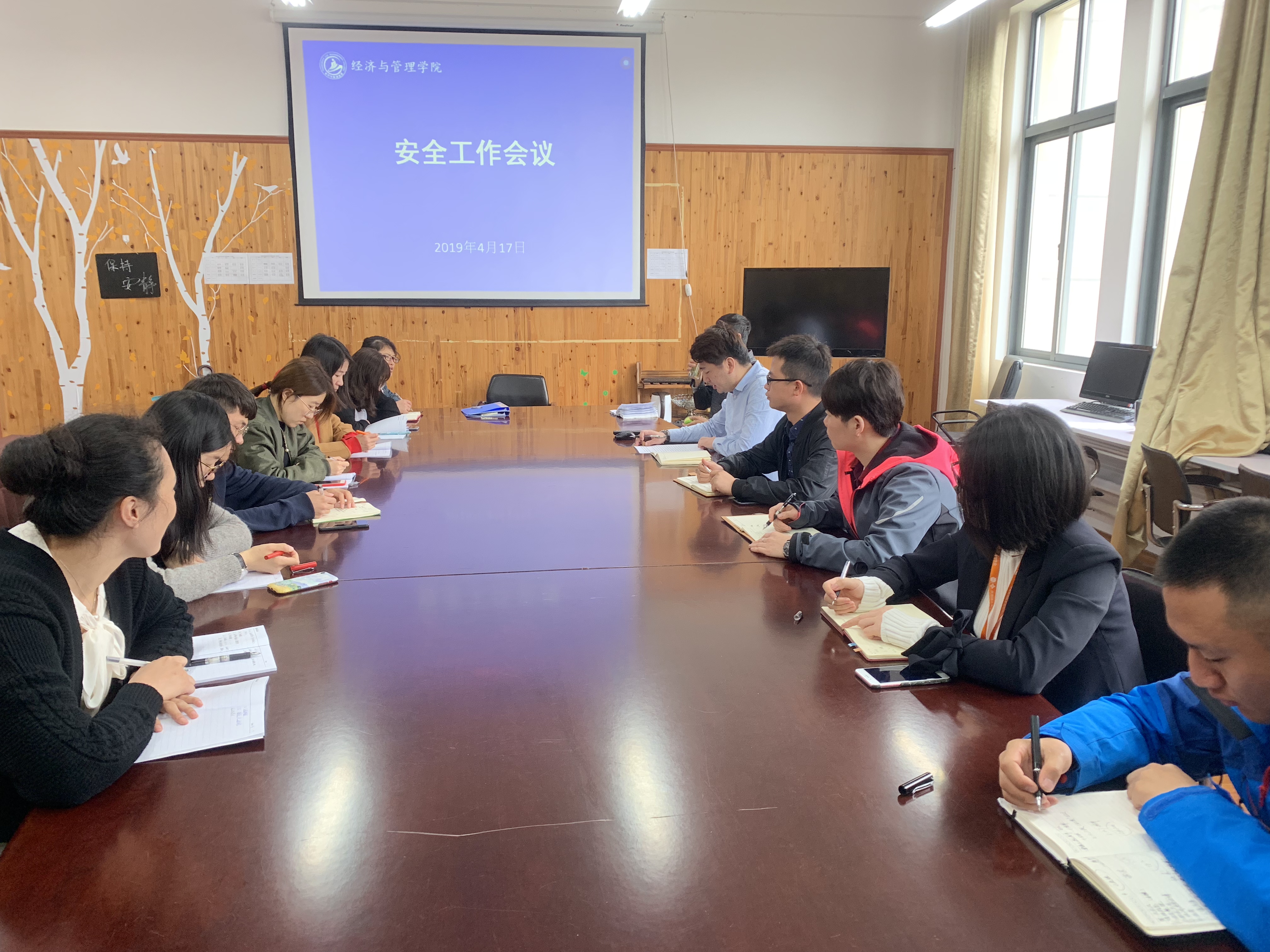 安全教育无小事,为强化学校安全稳定工作,构建和谐的教育环境,2019年4月17日上午10:15分,经济与管理学院在3号楼313会议室召开全体辅导员会议。会议由党总支书记石成玉老师主持,副书记郭骏老师及全体辅导员参加。