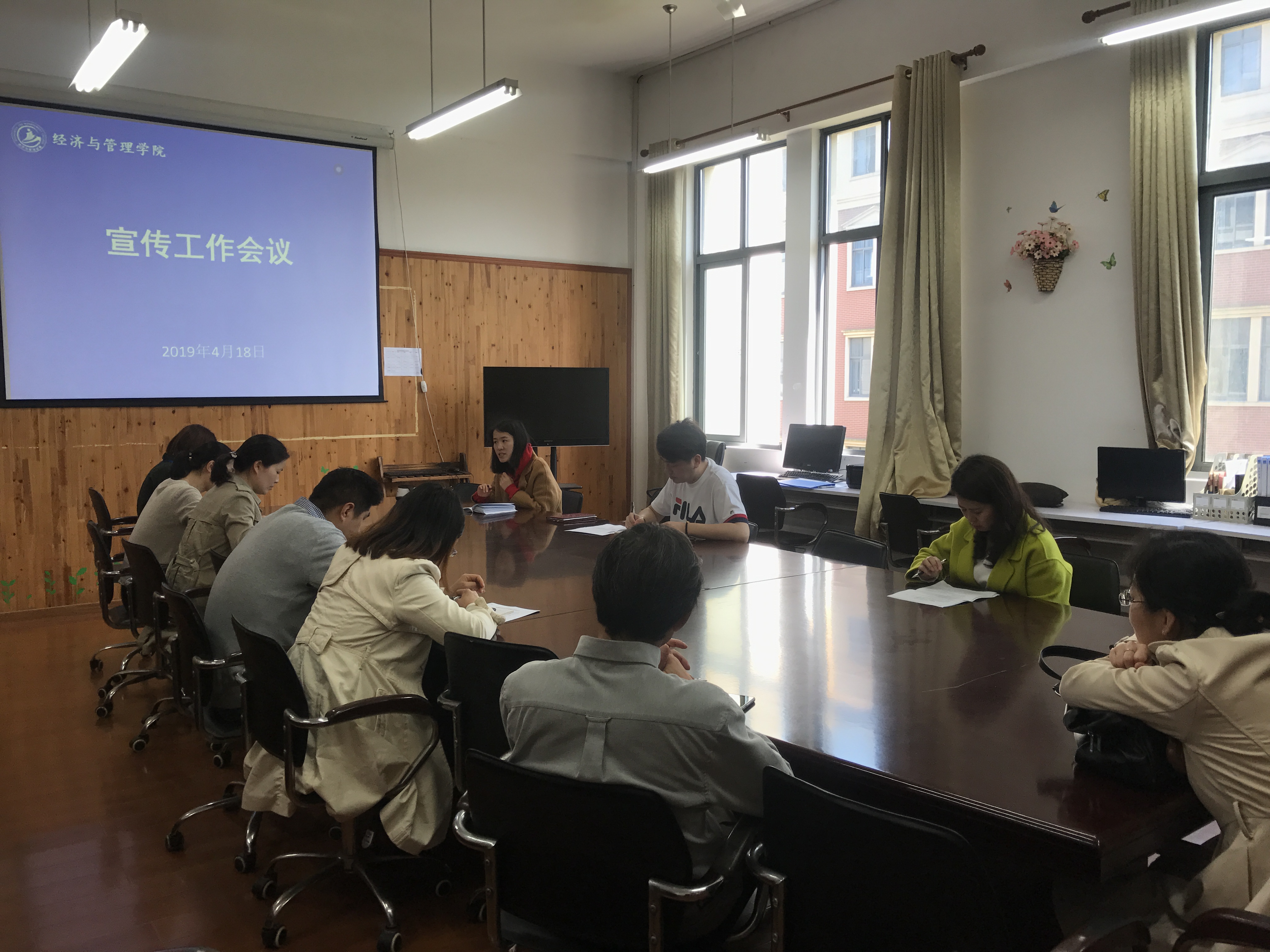 2019年4月18日中午13:00,经济与管理学院在3号楼313召开本月宣传会议。经管学院各个专业主任,院长助理、党总支和支部负责宣传的老师出席会议。会议由党总支副书记郭骏老师主持。