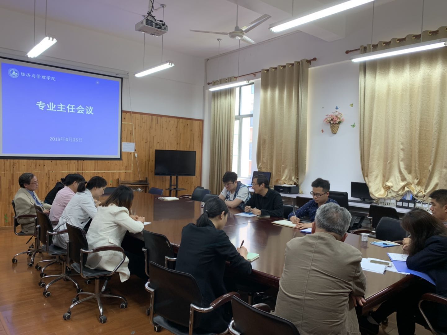 2019年4月25日,经济与管理学院在3号楼313召开专业主任教学研讨会,经管学院常务副院长张教授、党总支部书记石成玉、各专业主任、院长助理等参加会议,会议由张院长主持。
