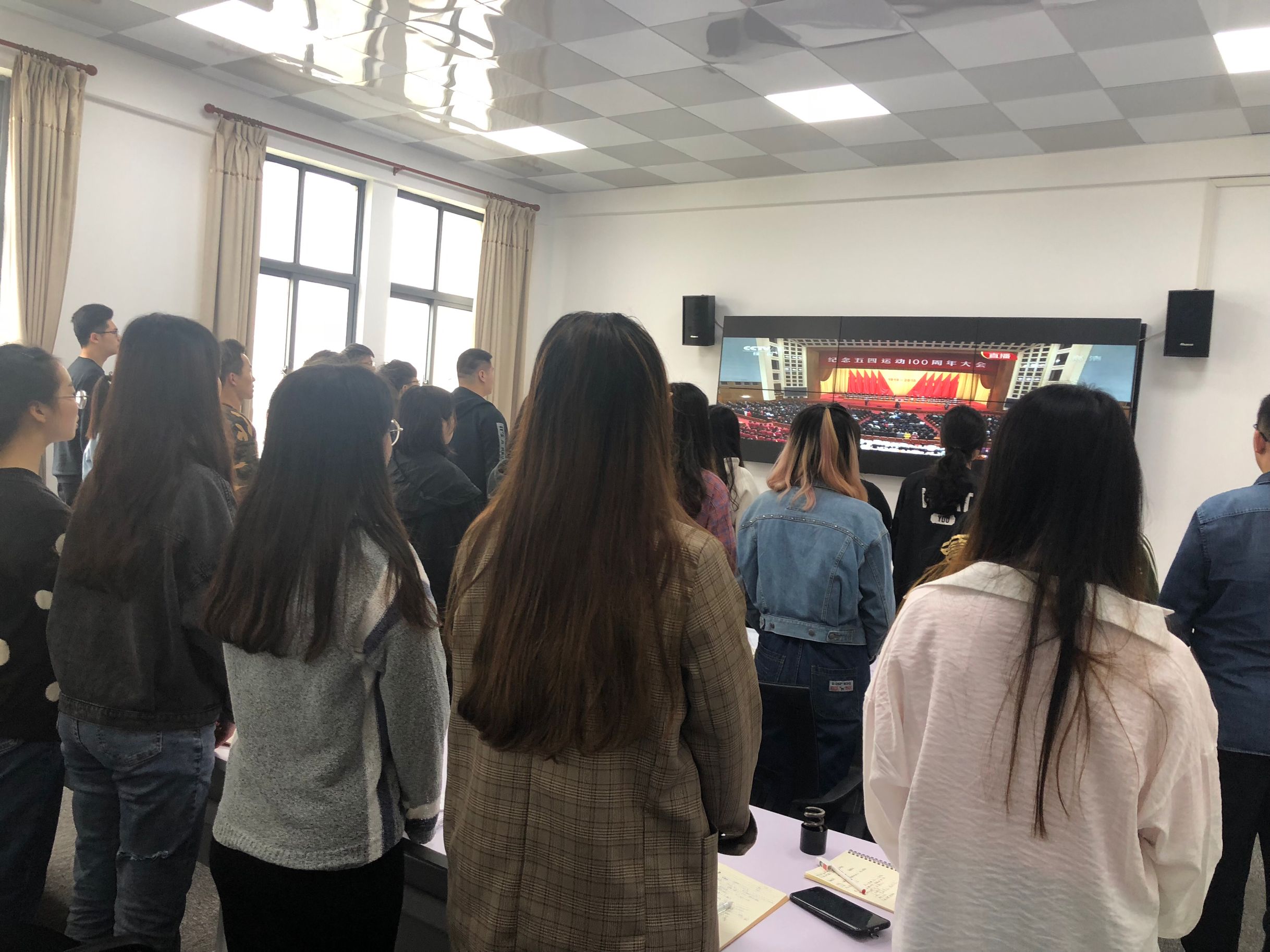 活动伊始,全体参会人员起立奏唱国歌,随后全体参会人员认真、严肃的观看了习近平总书记的讲话,会场气氛安静、严肃、认真,全体参会人员认真记录,认真思考习总书记的讲话。最后,活动以全体参会人员高唱国际歌顺利结束。
