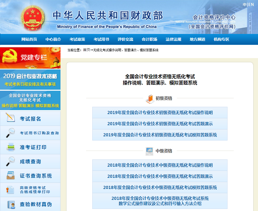 2019年度全国会计专业技术初级资格无纸化考试操作说明