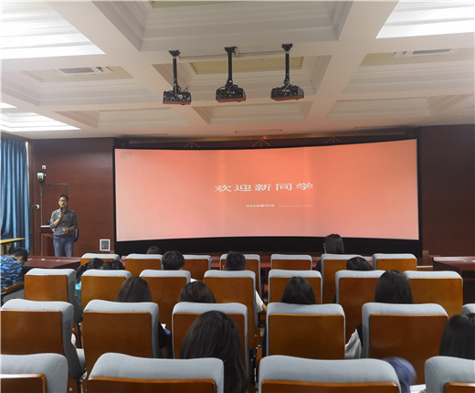 学院分团委书记岳建梅老师为大家介绍了学院分团委的组织架构和主要工作,向大家展示了学院分团委组织和参与的各项活动,并号召新生在入学之后,积极地加入分团委的组织,在一次次的活动中历练自己,提升自己。