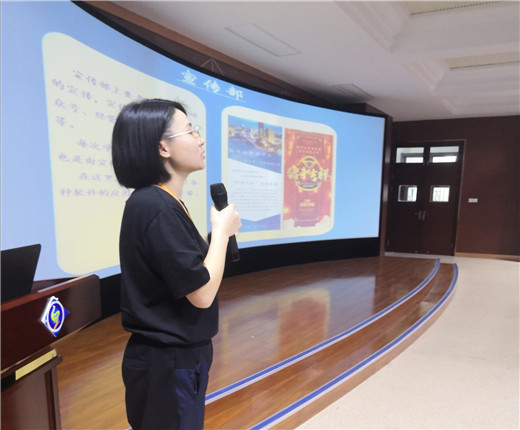学院分团委书记岳建梅老师为大家介绍了学院分团委的组织架构和主要工作,向大家展示了学院分团委组织和参与的各项活动,并号召新生在入学之后,积极地加入分团委的组织,在一次次的活动中历练自己,提升自己。