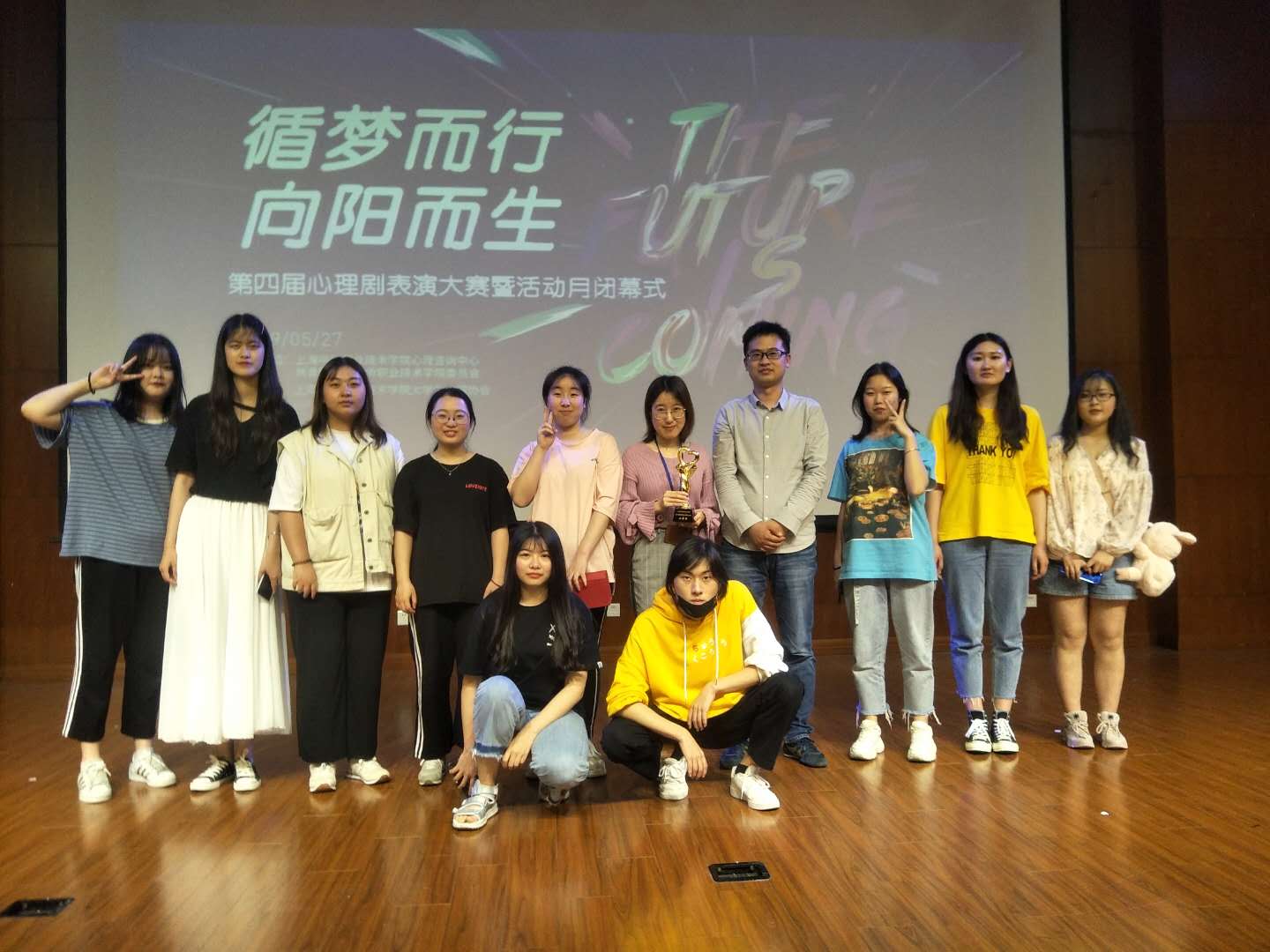经济与管理学院心理剧小品《无言的爱》更是以85.38的好成绩取得了第二名的奖杯!第二名的成绩来之不易,除了同学们不辞辛苦的排练、对词,大家慢慢的磨练出了默契,从中得到的不仅是演技的提高,也是对自身胆量的锻炼,更结识了新朋友!当然这也离不开李玲老师的的关心和全力支持以及曹珊珊老师的专业指导和每一次排练的陪伴,耐心的指出我们排练中的逻辑上的问题,并教我们如何掌控台词、走位;还有学院的党总支书记石成玉老师的关怀和支持,所以,我们才能有这么好的舞台效果呈现给大家。