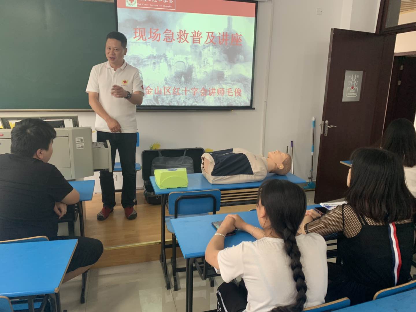 韩菲:通过红十字会老师为我们带来急救知识的讲解,我学到了很多实用救人方法,我感到十分的高兴。知识点主要分为心肺复苏和气管卡住异物解救方法两个部分。事后还留出了时间让我们动手实践,老师也很细心的在旁指导纠错,体验的时候觉得神奇与激动。希望自己以后能掌握更多的急救知识,多助人为乐。