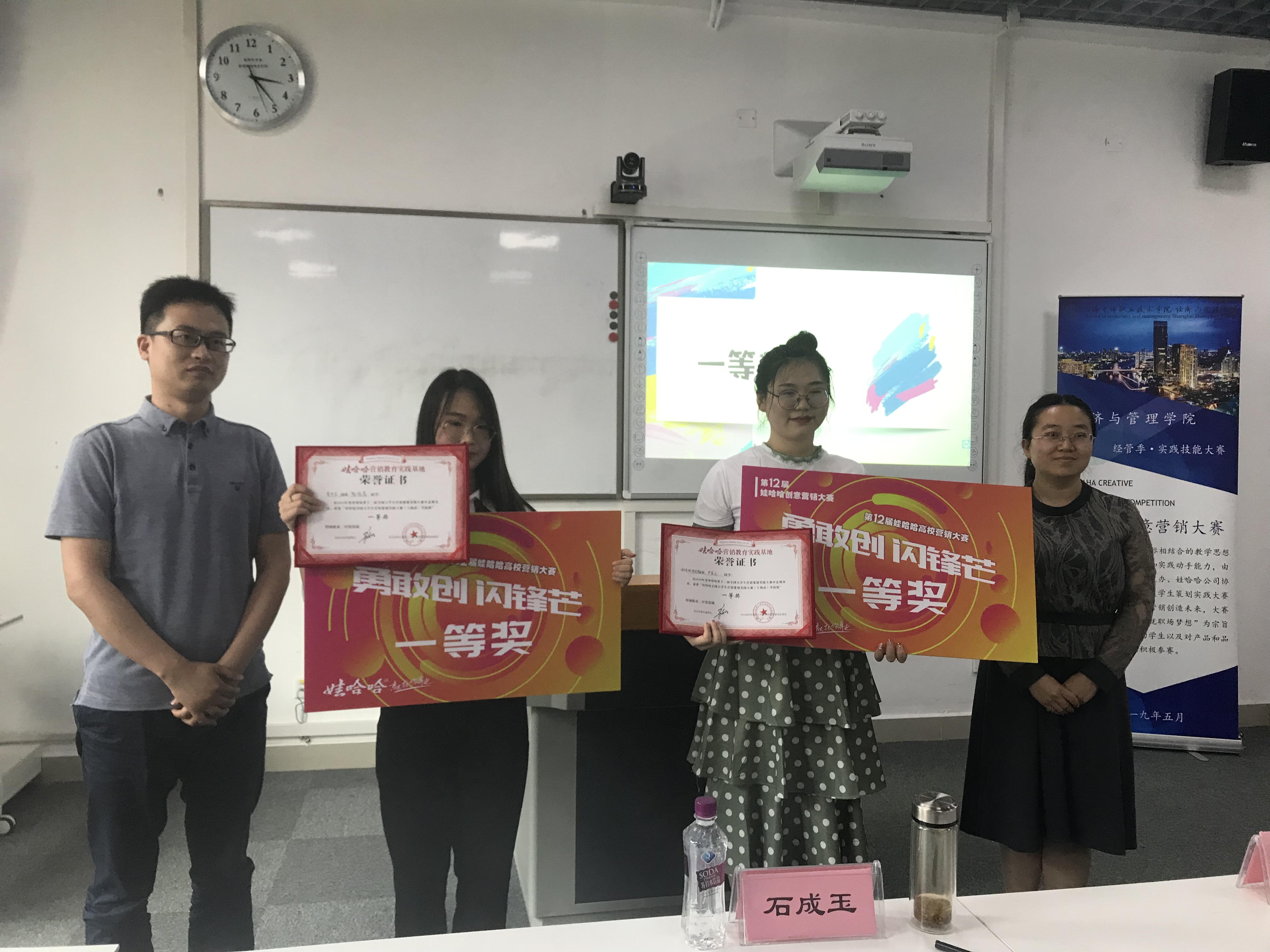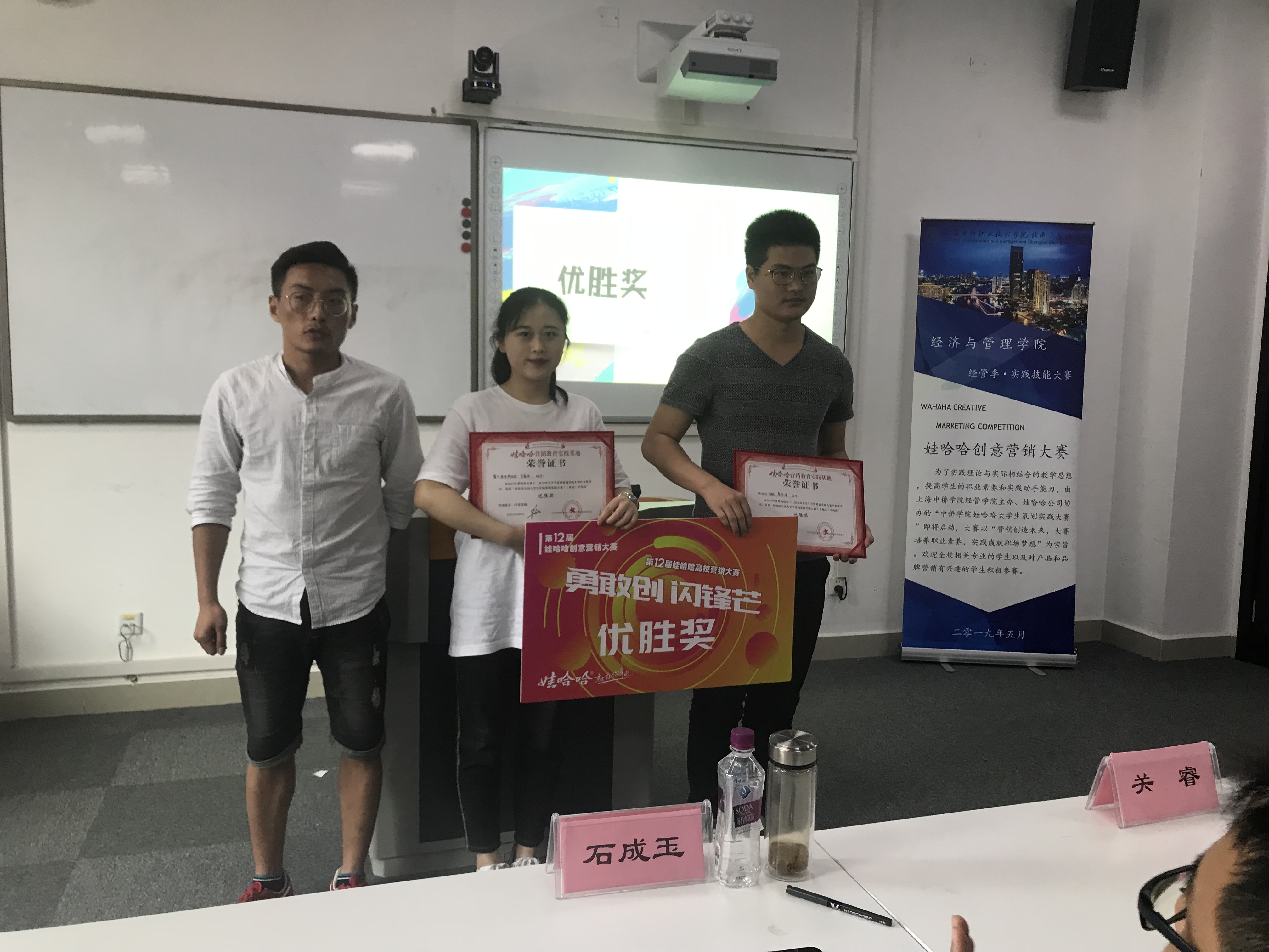 经过激烈的角逐,最终评选出了2个一等奖、2个二等奖、3个三等级和2个优胜奖。最终17国商参赛队拔得头筹,获得本次娃哈哈创意营销大赛的一等奖,18国商参赛队分别荣获三等奖和优胜奖。17国商参赛队将继续征程,参加娃哈哈创意营销省级大赛,希望他们能再创佳绩!