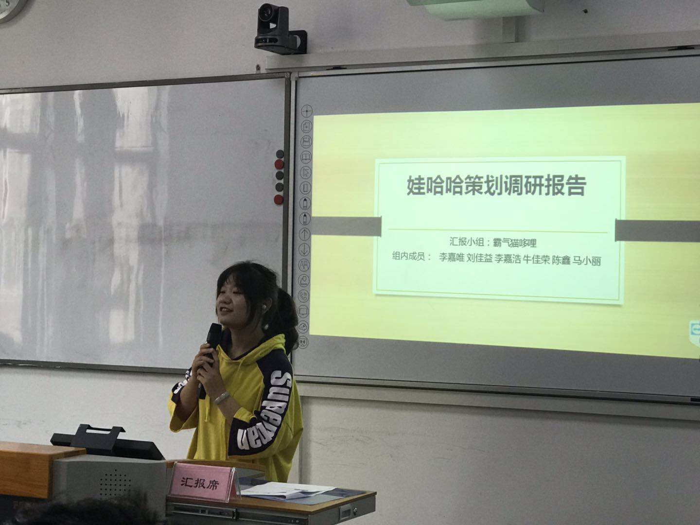 为了检测参赛小组实践动手能力以及比赛成果,于2019年6月5日12:30分在经济与管理学院3号楼302举行娃哈哈创意营销大赛决赛。