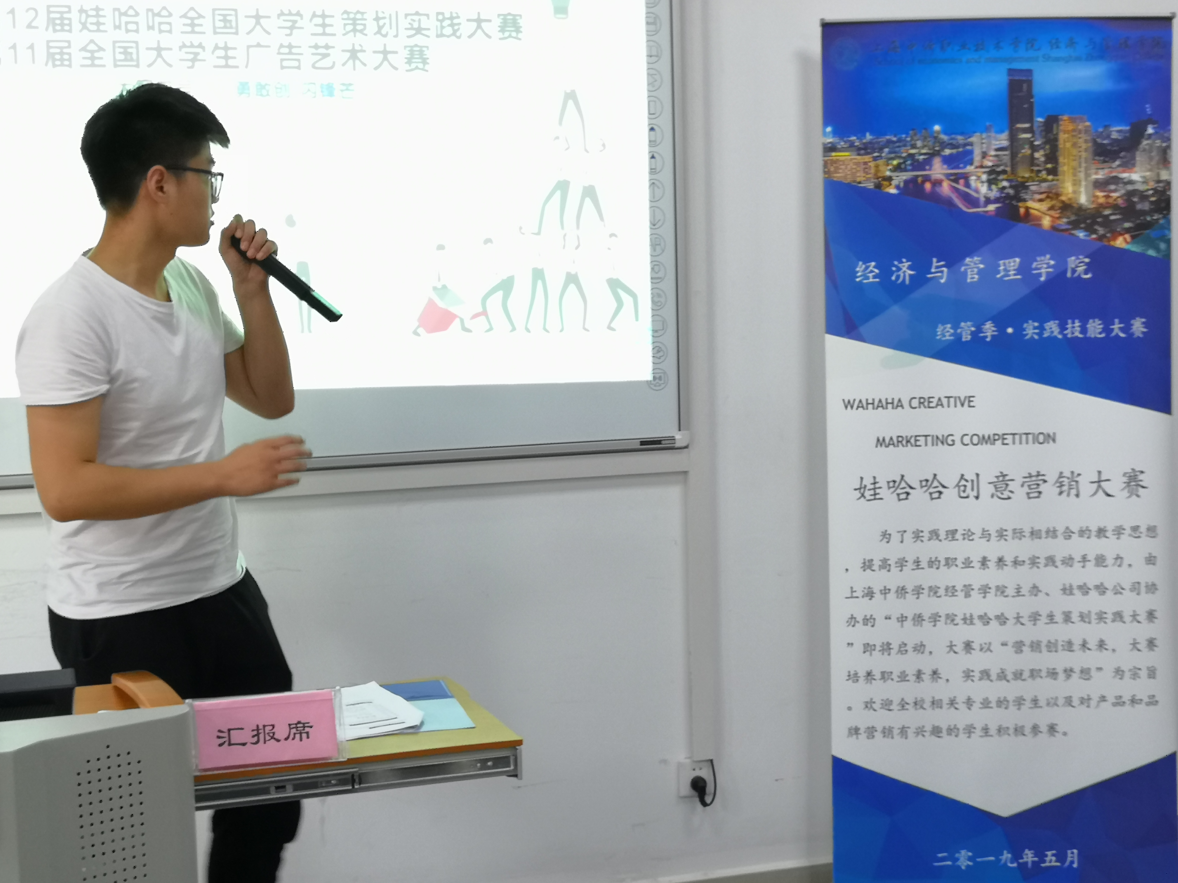 在今天举行的创意营销展示比赛暨经管学院经管季决赛中,各个团队充分发挥大学生在创意营销方面的优势,展现了他们在创新方面的天赋,贡献了不少令人脑洞大开的营销方案,获得了评委和娃哈哈方面的好评。