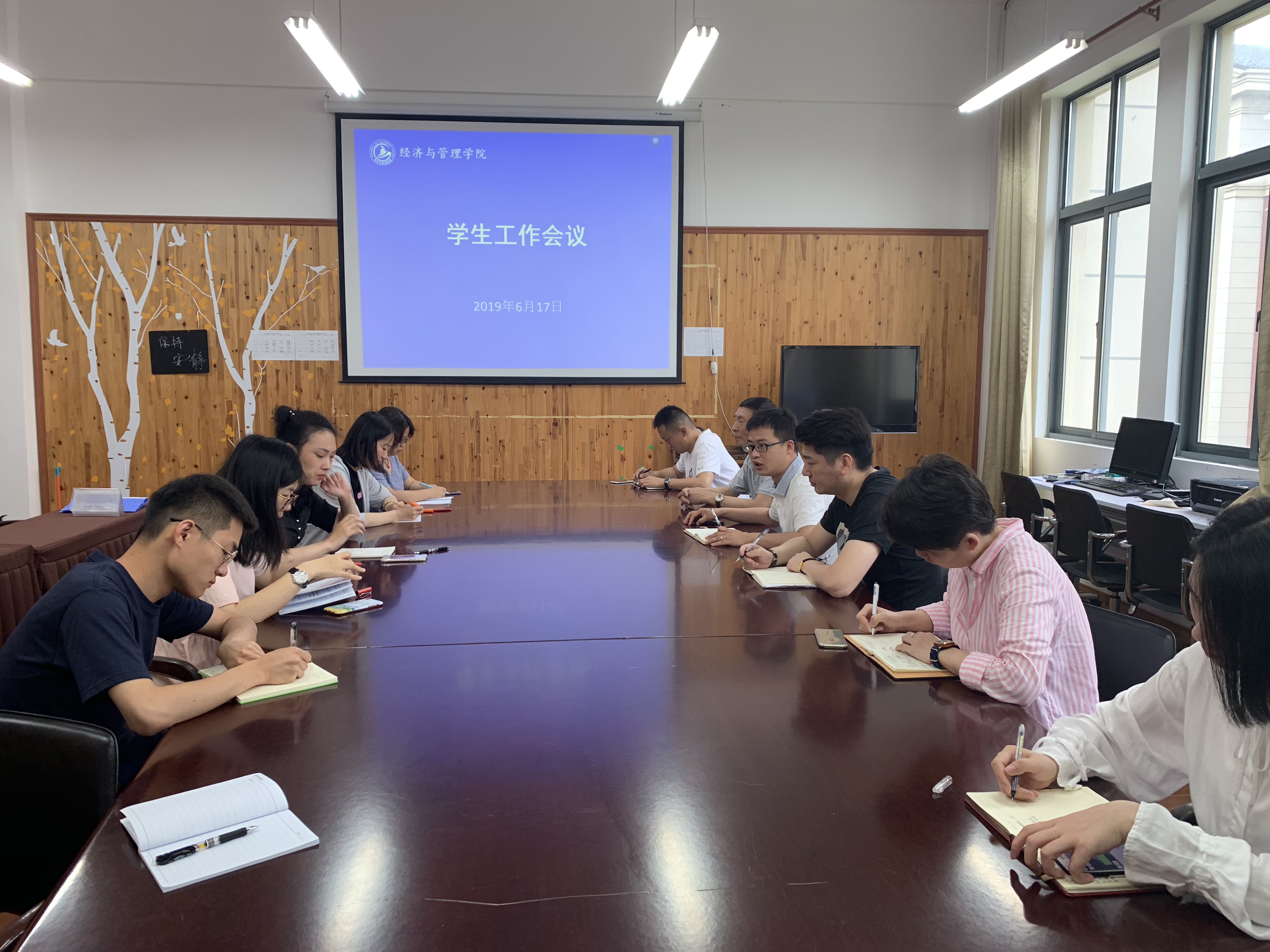为了保证学生期末工作的顺利开展,尤其是毕业生安全离校共奏,6月17日,经济与管理学院召开期末学会僧工作总体部署会,经管学院书记石成玉、副书记郭骏和全体辅导员参加会议。