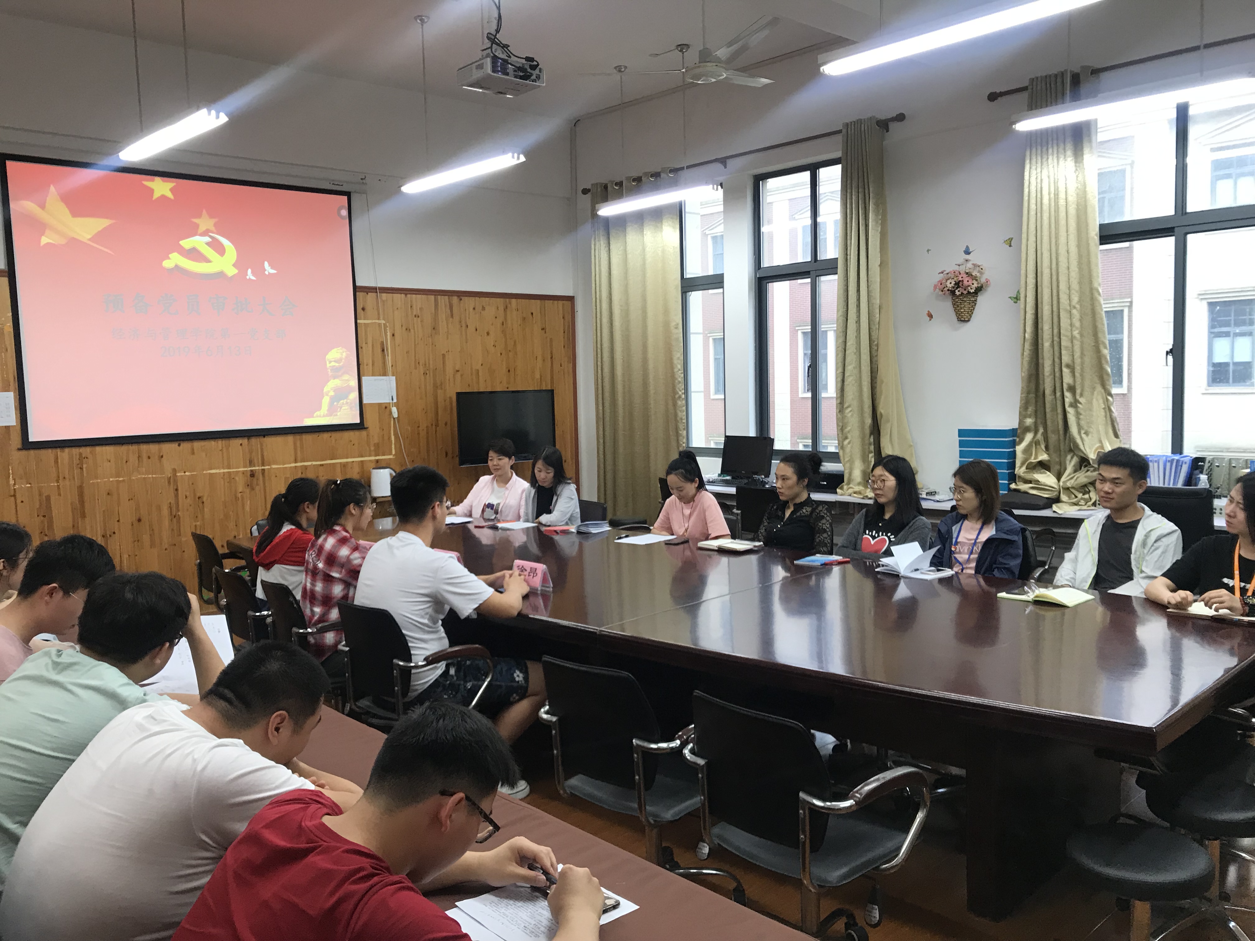 首先由审批对象17工商2班徐昂、17金融4金叶茗、17金融1班杭雯进行自我介绍,并从思想上、生活上、工作上和学习上分别进行阐述,之后由他们的第一入党介绍人邵静老师、岳建梅老师,第二入党介绍人韩雯倩老师、邵静老师、郑学雨分别对他们进行客观评价以及向他们提出了建设性的意见和建议。最后所有在场的党员老师进行匿名投票,经表决,全票通过上述3名同学成为预备党员。