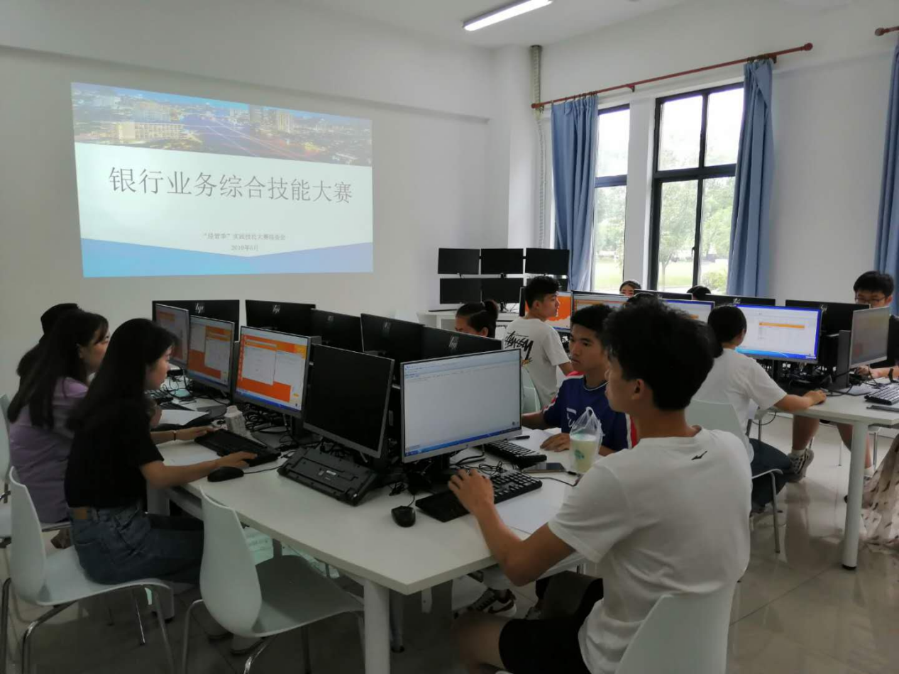 2019年6月25日上午9点在3号楼101教室进行经管季——银行业务综合技能大赛,由经济与管理学院17级和18级金融管理专业的同学参加,本次大赛由钟小平、范国强和王沈三位老师担任裁判。