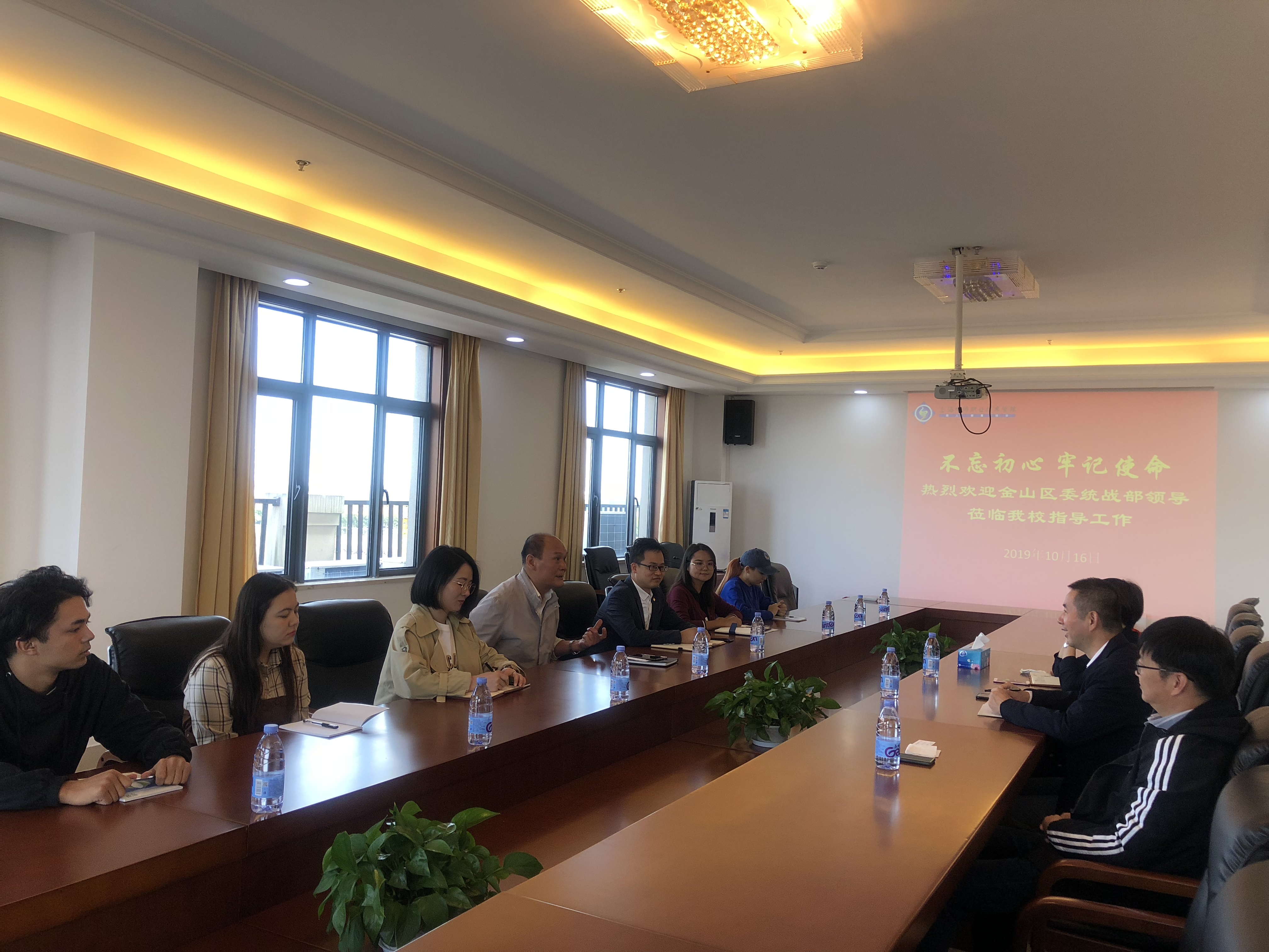 值此“不忘初心 牢记使命”主题教育阶段,我校积极配合金山区委统战部做好服务少数民族学生和归国教师等实际工作,努力将工作落到实际。10月16日上午,金山区委统战部戴平副部长、金山区归国华侨联合会陆惠萍副主席、上海新跃物流企业管理有限公司吴董事长一行来我校视察调研,我校党委书记平杰、统战部部长石成玉、少数民族辅导员孜拉、辅导员岳建梅和学生代表参加会议。