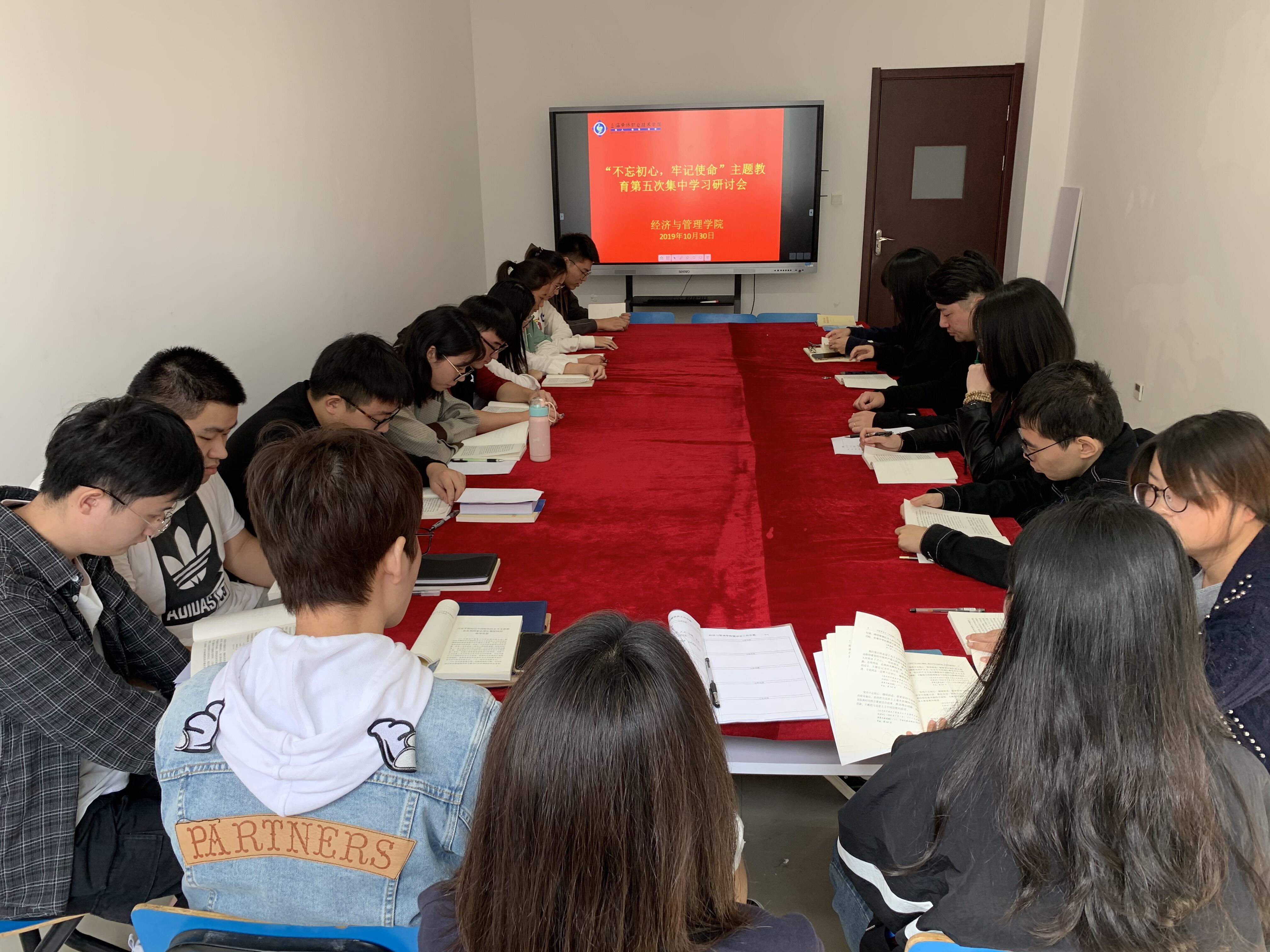 为深入理解习近平新时代中国特色社会主义思想,提升党员教师和同学的理论素养,2019年10月30日13:00,经济与管理学院第一党支部开展第五次主题教育学习会,组织全体师生党员共同朗读《习近平关于“不忘初心、牢记使命”论述摘编》部分段落。本次活动不仅是开展“不忘初心、牢记使命”主题教育的一部分,也是扎实学习习近平新时代中国特色社会主义思想的具体举措。