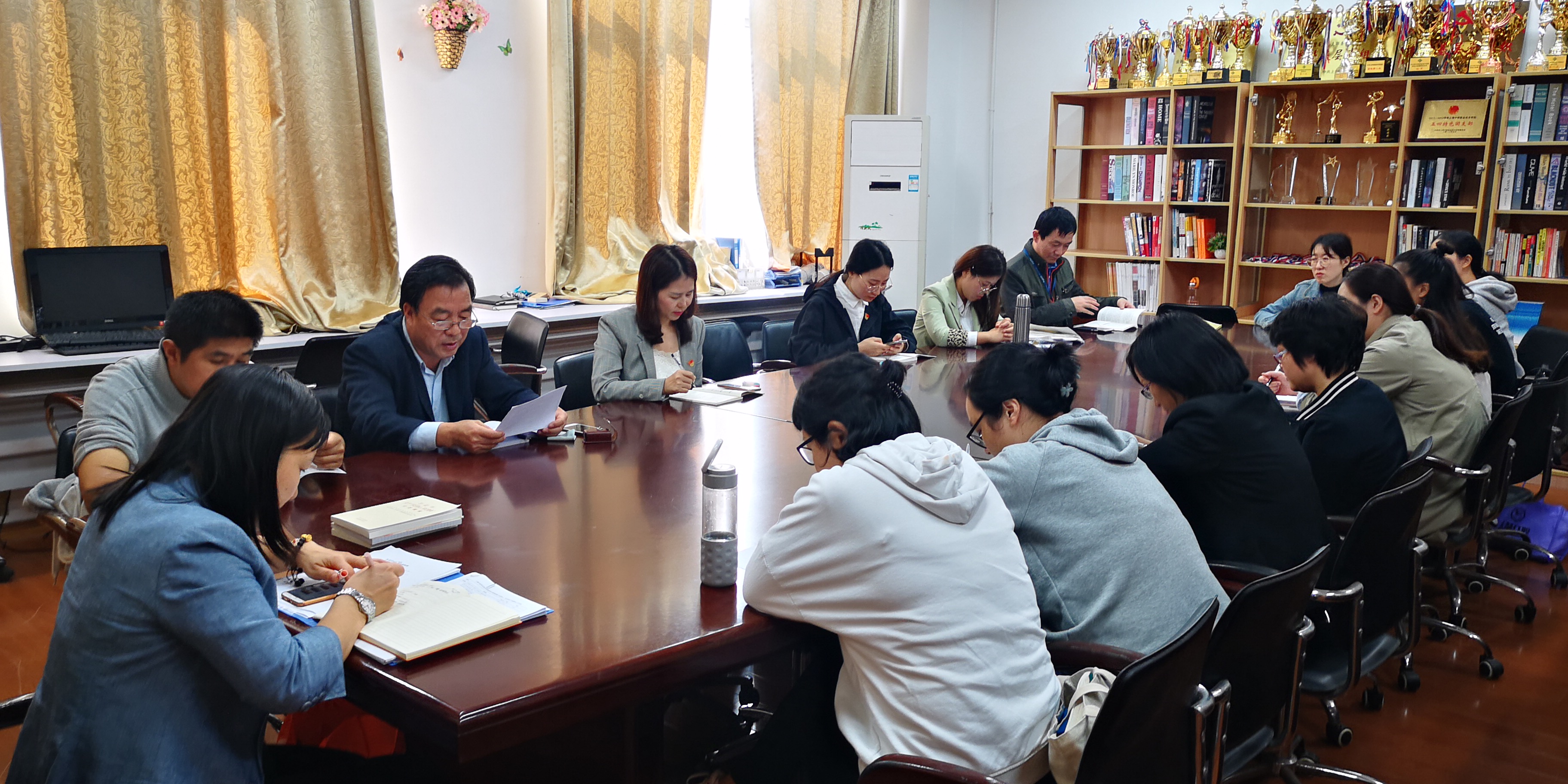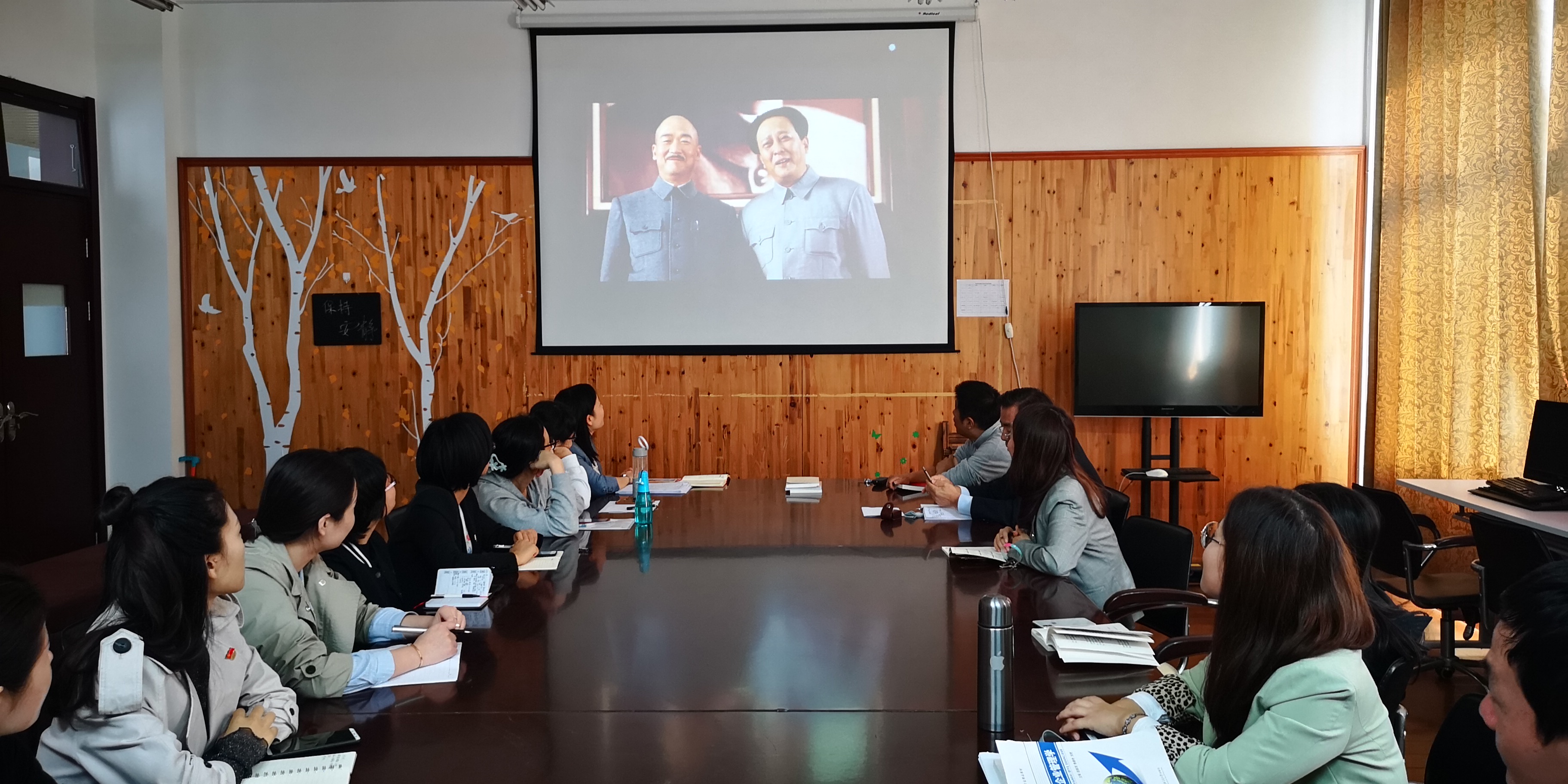 会上,支部书记杨慧同志简单介绍了会议的两项议程,首先,第二党支部在布置全体党员教师完整观看影片的基础上,本次会议集中观看电影精彩片段,并由党员教师分享观影体会,之后由教学副院长王殿安教授结合“不忘初心,牢记使命”主题教育发言。