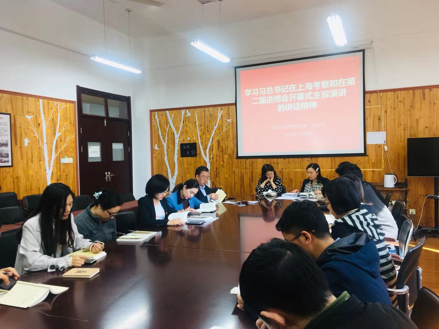 会上,杨慧书记传达了习总书记考察上海和第二届进博会主旨讲话精神。